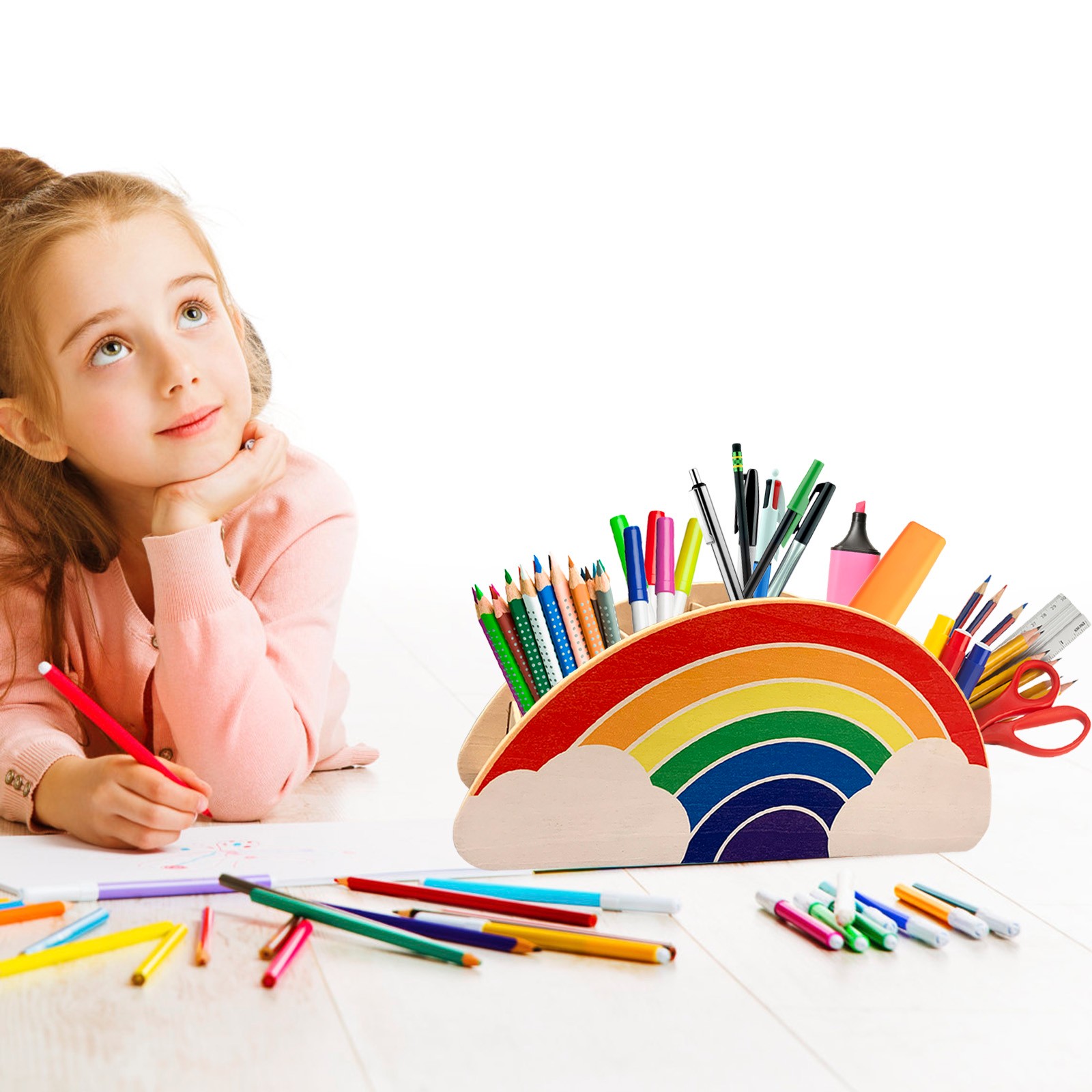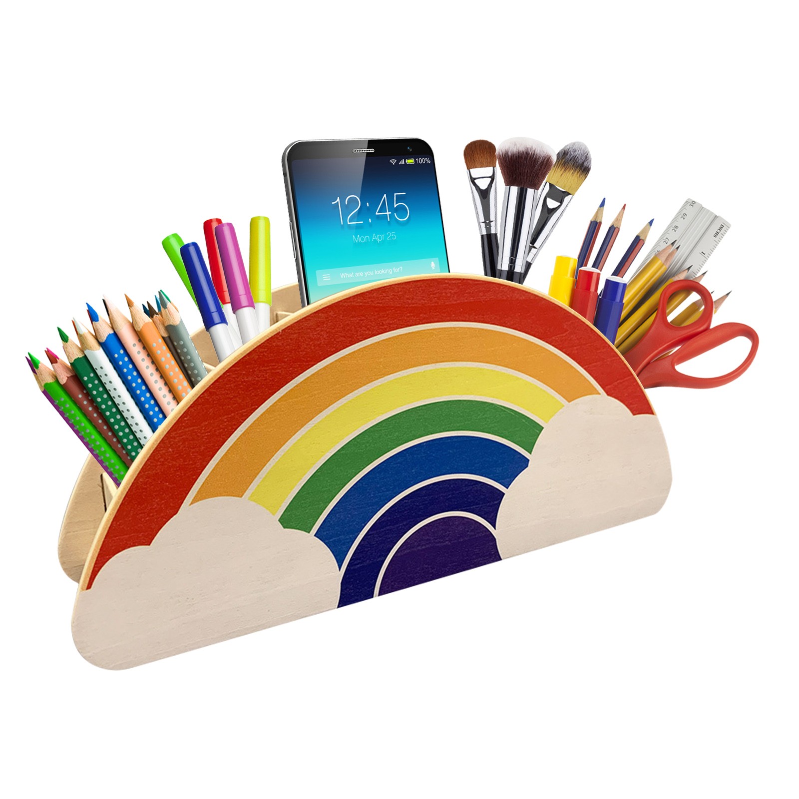 Деревянный держатель ручки Радужный настольный офисный канцелярский органайзер для небольших предметов