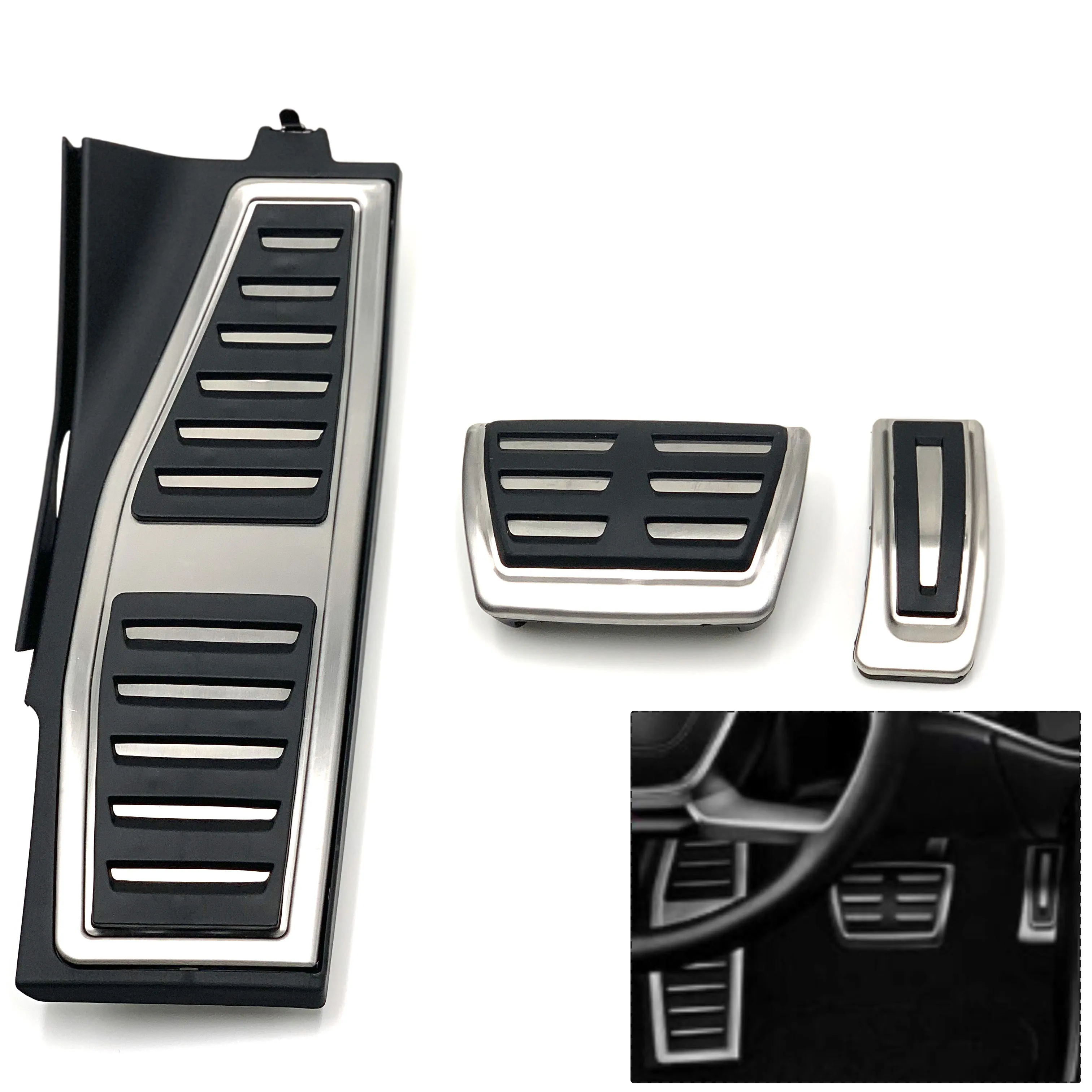 Совместимая модель:Костюм для Audi A8 D5 S8 5H (2019-2021)Примечание:Просто подходит для левого привода автомобиля (LHD), не подходит для правого автомобиля (RHD).Примечание: просто подходящая замена для остальной пластины оригинальная ЧАСТЬ no is 4H1 864 777BМатериал: высококачественная нержавеющая сталь и нескользящий пластикСостояние: высокое качество и 100% новый (никогда не был использован или установлен)(Третьи вечерние товары, не Оригинальные.)Заводская оптовая цена, гарантия хорошего качестваЦвет: как на картинкеРазмер (прибл.) : Как показано на картинкеПожалуйста, подтвердите, что размер продукта может соответствовать вашему устройству перед покупкой.Особенности:1. Применение: украшение и изменение.2. Эти защитные устройства защитят ваш автомобиль от царапин, сколов и царапин.3. Они легко устанавливаются DIY.4. Редкие детали для украшения и сохраняет ваш автомобиль уникальным и привлекательным5. Изготовлен из высококачественного материала, антикоррозийный, устойчивый к коррозии, прочный6. Простая установка, нет необходимости Сверления или сварки7. Идеально подходит для Авто DIY, идеальная замена или украшение.Посылка включает в себя:3 шт./компл. для AT (автоматическая передача) педаль акселератора, педаль тормоза и педаль для ногИли4 шт./компл. для MT (ручная передача) педаль акселератора, педаль сцепления, педаль тормоза и педаль для ног(Примечание: этот товар поставляется без розничной коробки, но мы упакуем его перед отправкой.)Способ установки:Легко устанавливается непосредственно. Очистите поверхность автомобиля, держите его сухим, легко установка не требует бурения, нет необходимости в сваркеСверление не требуется. Сначала необходимо снять оригинальную резиновую педаль тормоза и педаль сцепления.1) педаль для ног: Снимите оригинальную опорную пластину, накройте ее непосредственно.2) педаль тормоза: Снимите оригинальную резину, затем накройте на оригинальную педаль.3) педаль акселератора: Очистите поверхность и держите ее сухой. Крышка на оригинальную педаль газа от вверх до вниз.Закончите! Идеально!![]()