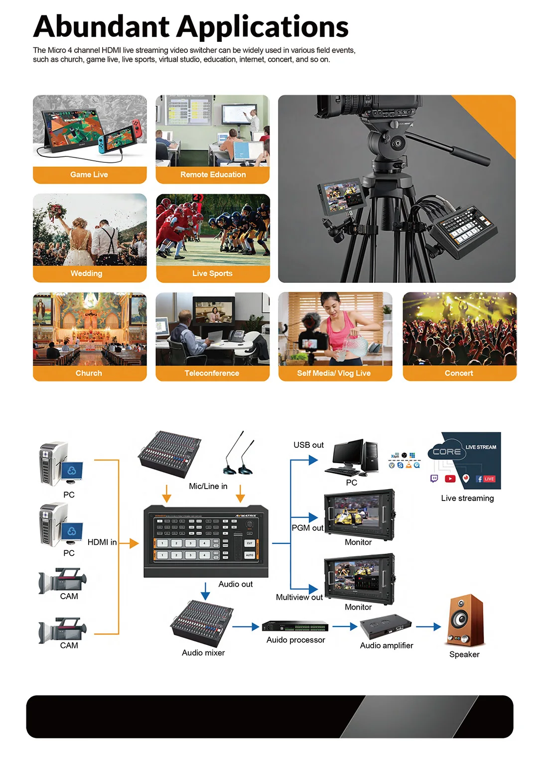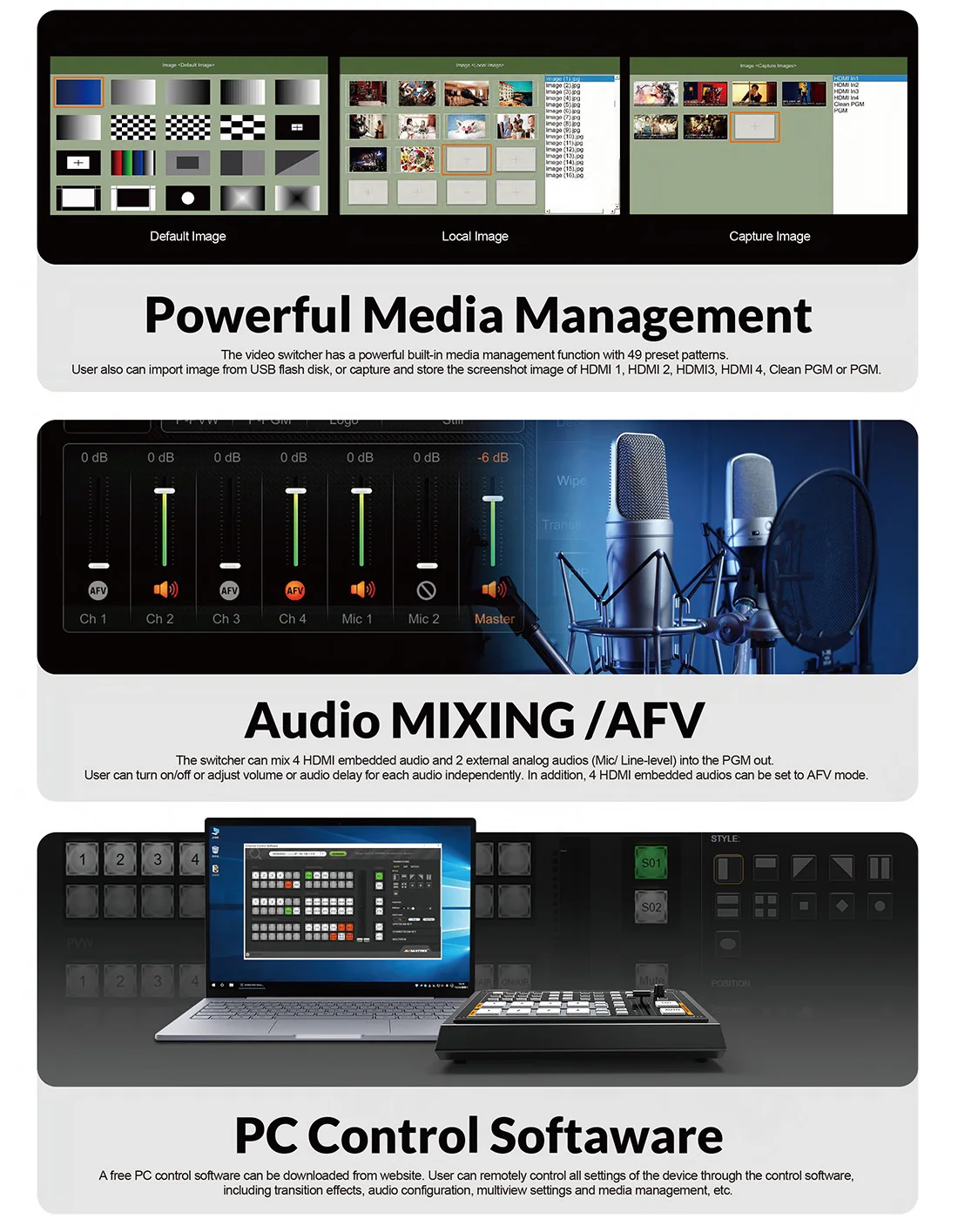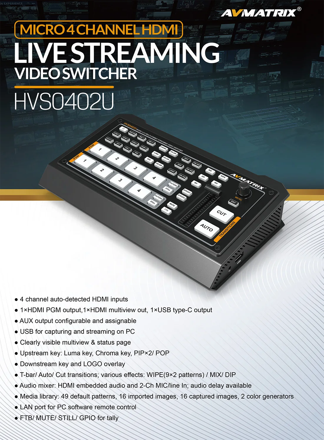 Avmatrix HVS0402U Новый 4 hdmi вход переключатель OBS в режиме реального времени потокового видео коммутатор с Luma key, Chroma key, FTB/ PIP для tally