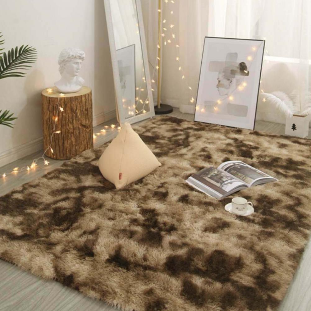 Плюшевый коврик Tie-dye милый прикроватный для спальни нескользящий напольный