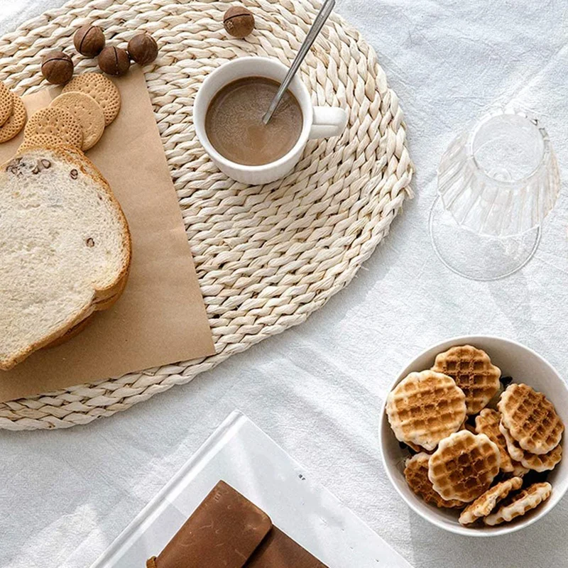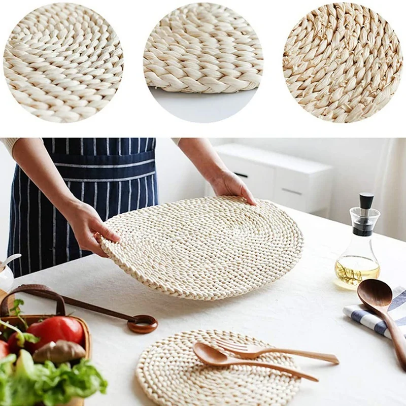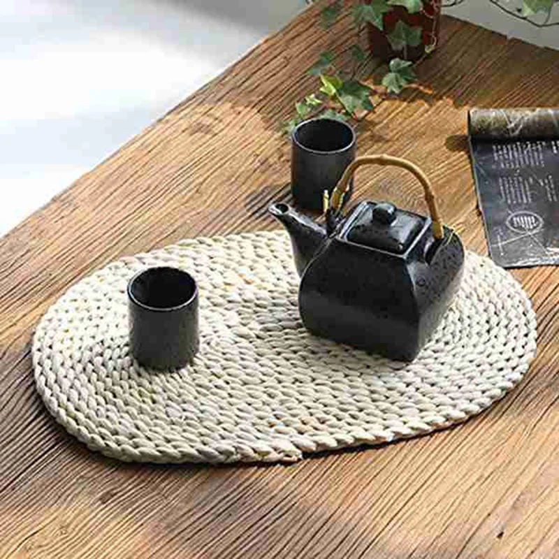Натуральные салфетки из веревки подложки под тарелки, коврики для стола, 3 шт. овальные теплоизоляционные Нескользящие тканые салфетки из кукурузы для дома, офиса и т. д.