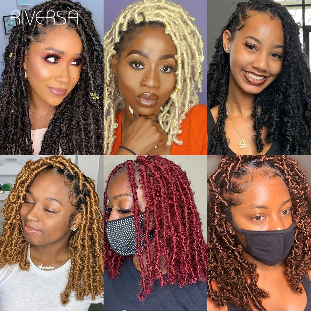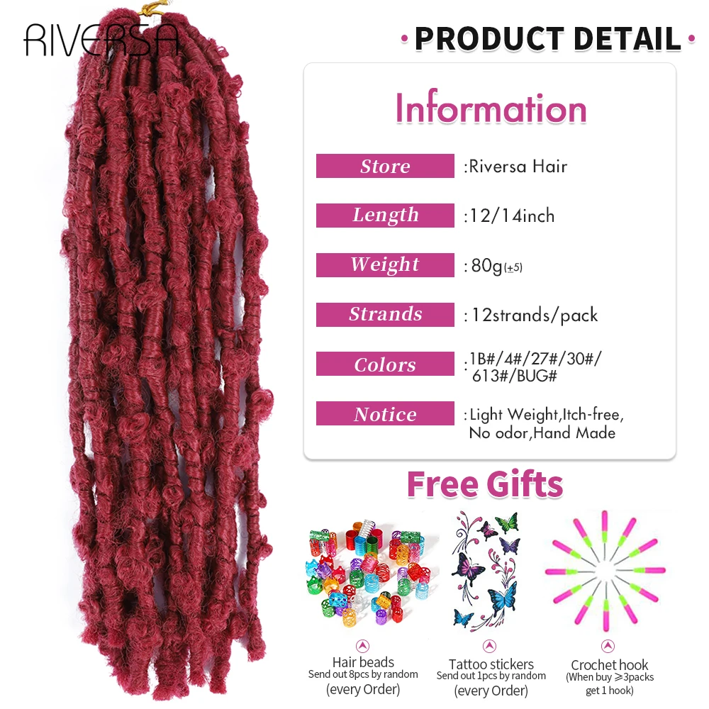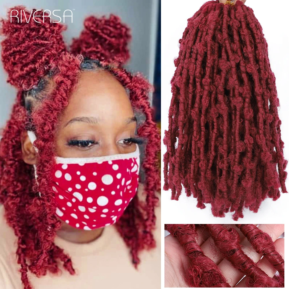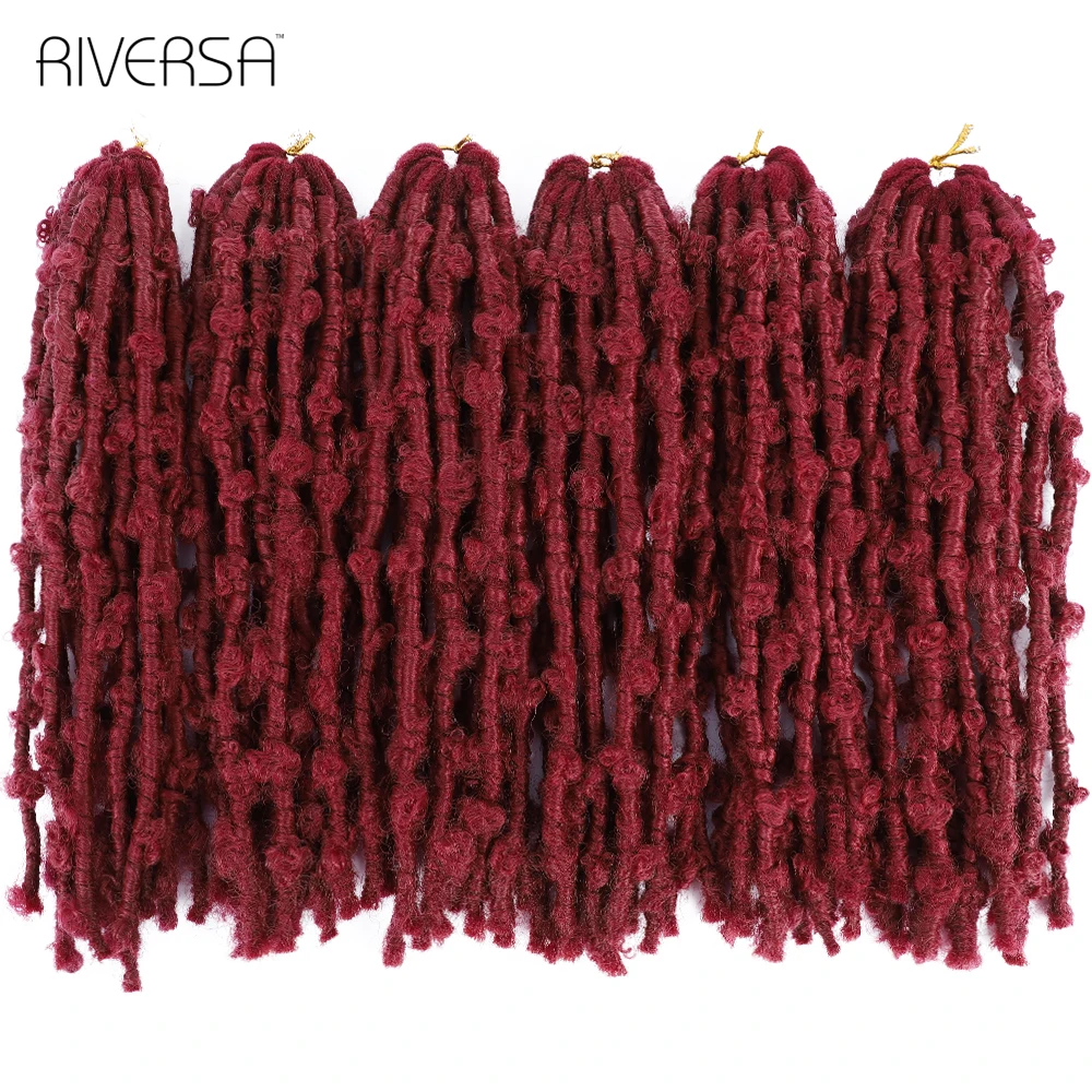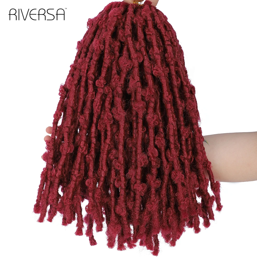 Synthetic Butterfly Locs Crochet Hair 12inch Burgundy Red Butterfly Distressed Braiding Hair 1- 9pcs Bobo Faux Dreads Loks Hair