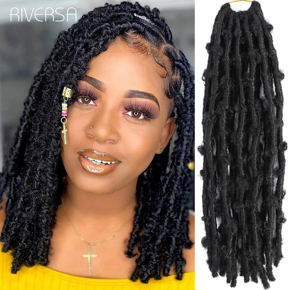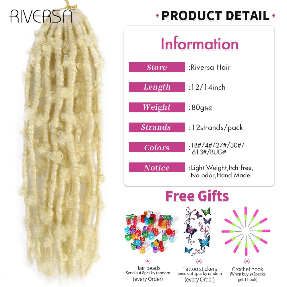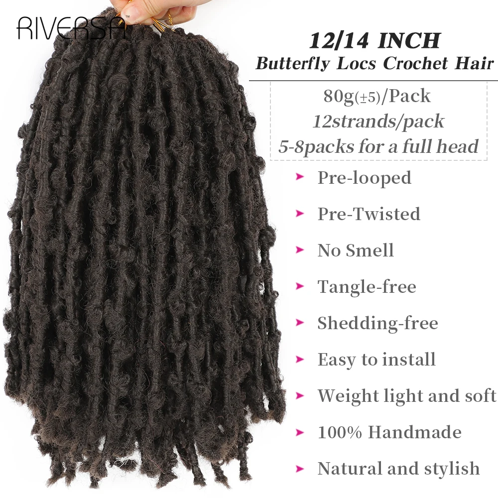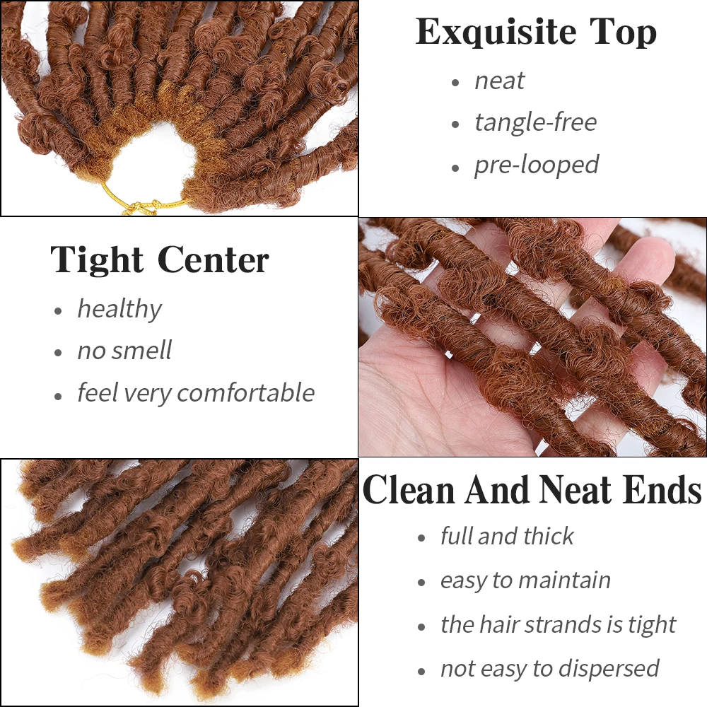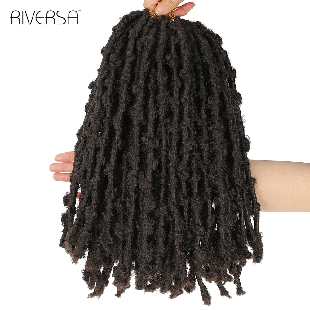 Synthetic Butterfly Locs Crochet Hair 12inch Burgundy Red Butterfly Distressed Braiding Hair 1- 9pcs Bobo Faux Dreads Loks Hair