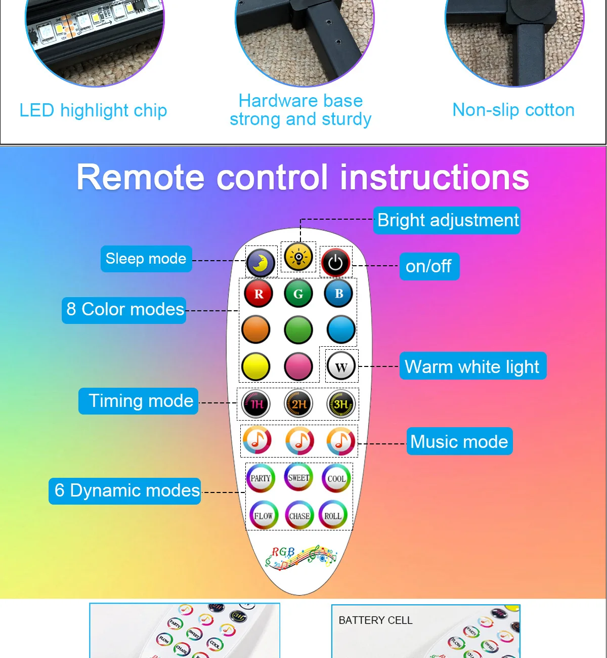 "Warm white dimming,you can dim the brightness by the dimmer; RGB colorful, you can control the RGB and brightness by remote.