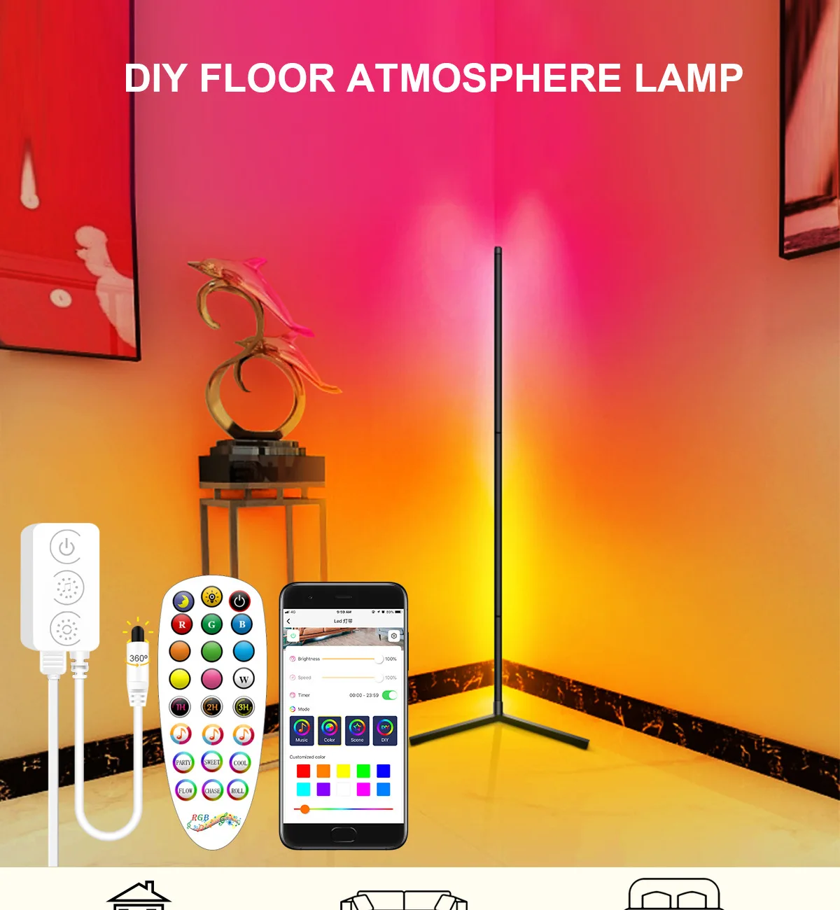 Drop Shipping Newest RGB Floor Lamp Modern APP LED Floor Night Lights Corner Standing Lamp For Living Room Decoration