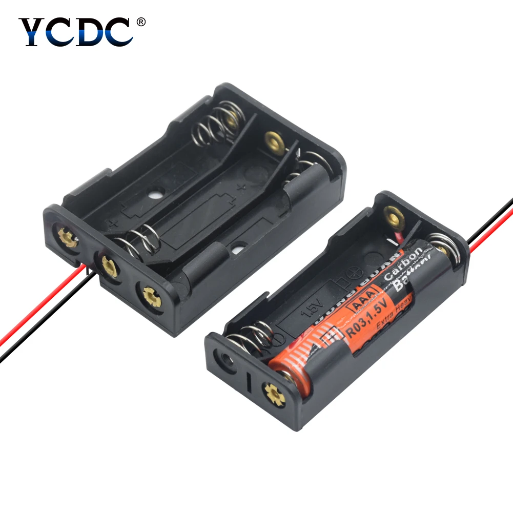 Он может держать Стандартные батарейки размера AAA, либо для одноразовых или перезаряжаемых батарей, черный и красный дизайн двух проводов отлично подходит для легкой пайки и подключения.