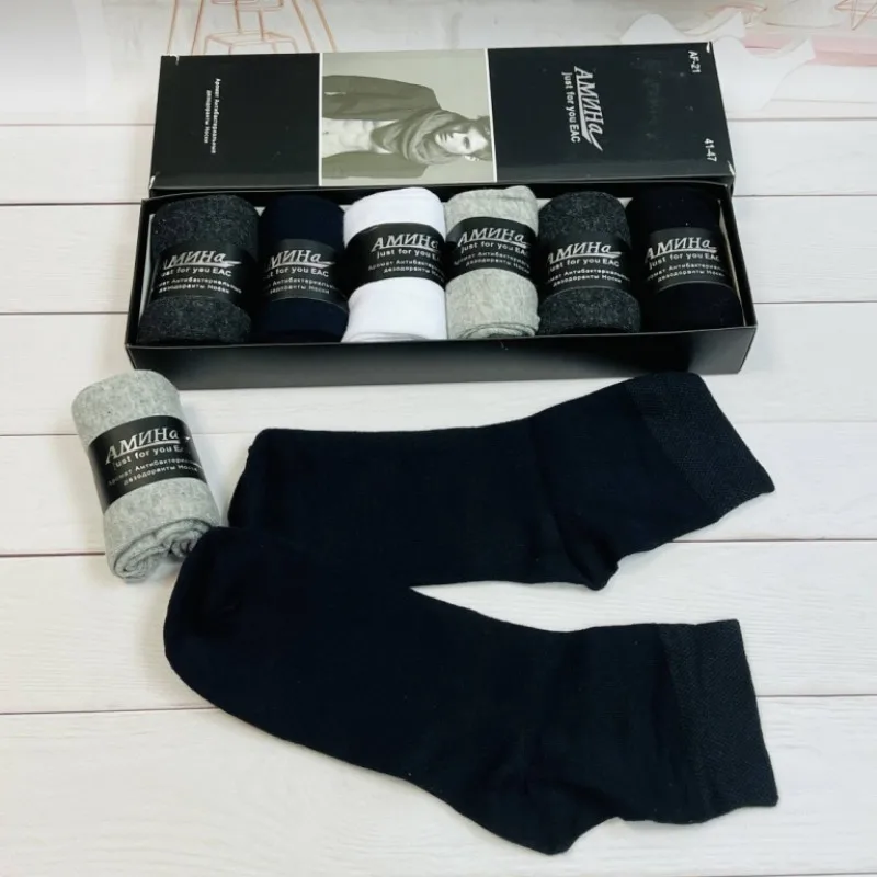 Носки классической длины мужские хлопок премиум антибактериальные в подарочной коробке Размер 41-47 Цена за 6 пар