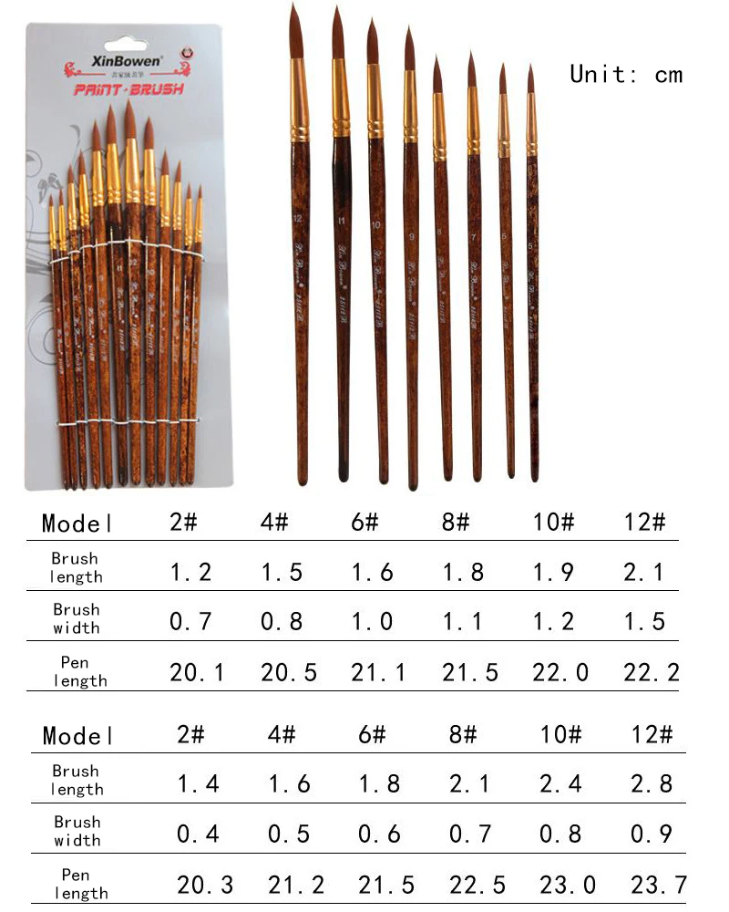 Этапы предварительной обработки <1>: натрите кончик ручки пальцем. Затем поместите наконечник в теплую воду около 30 градусов, чтобы замочить наконечник. (Это предотвращает падение плавающей щетиной при использовании новой ручки) <2>: при использовании новой ручки несколько щетинок отвалились. Это нормально. Это не проблема качества. Метод обслуживания кисти <1>: гуашь, акварель, макияж, живопись, промышленные и другие немаслянистые картины. После использования для немасляной окраски немедленно Вымойте водой. Затем выправьте ручку. Положите его в прохладном и сухом месте. Не прикасайтесь к другим предметам, когда ручка сухая. Предотвращает деформацию. <2>: картина маслом. Акрил. Нейл-арт. Цветная живопись. После использования его необходимо очистить с помощью скипидара или светильник моющего средства. Затем краску водой. Наконец, положите ручку в прохладном и сухом месте. Не прикасайтесь к другим предметам, когда ручка сухая. Предотвращает деформацию. Меры предосторожности при использовании кисти <1>: не замачивайте кисть в течение длительного времени. Мойте щетку после каждого использования. Выдавите воду и поместите ее в прохладном и сухом месте. Если кисть замачивается слишком долго, это приведет к повреждению ручки и наконечника ручки. <2>: не кладите кончик ручки в рот.