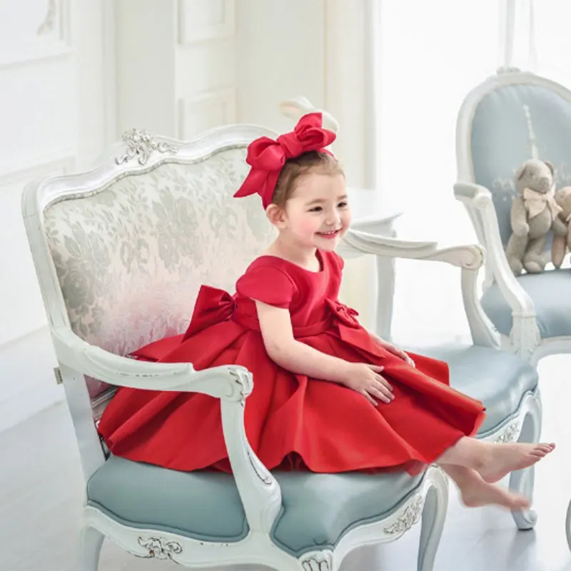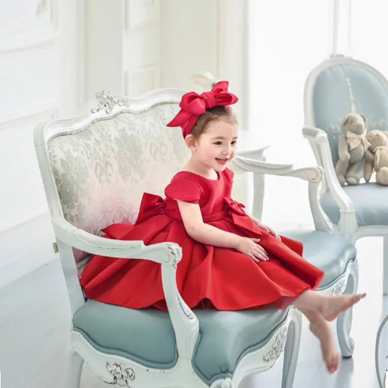 Атласное платье с цветочным принтом для девочек на свадьбу бантом первый день
