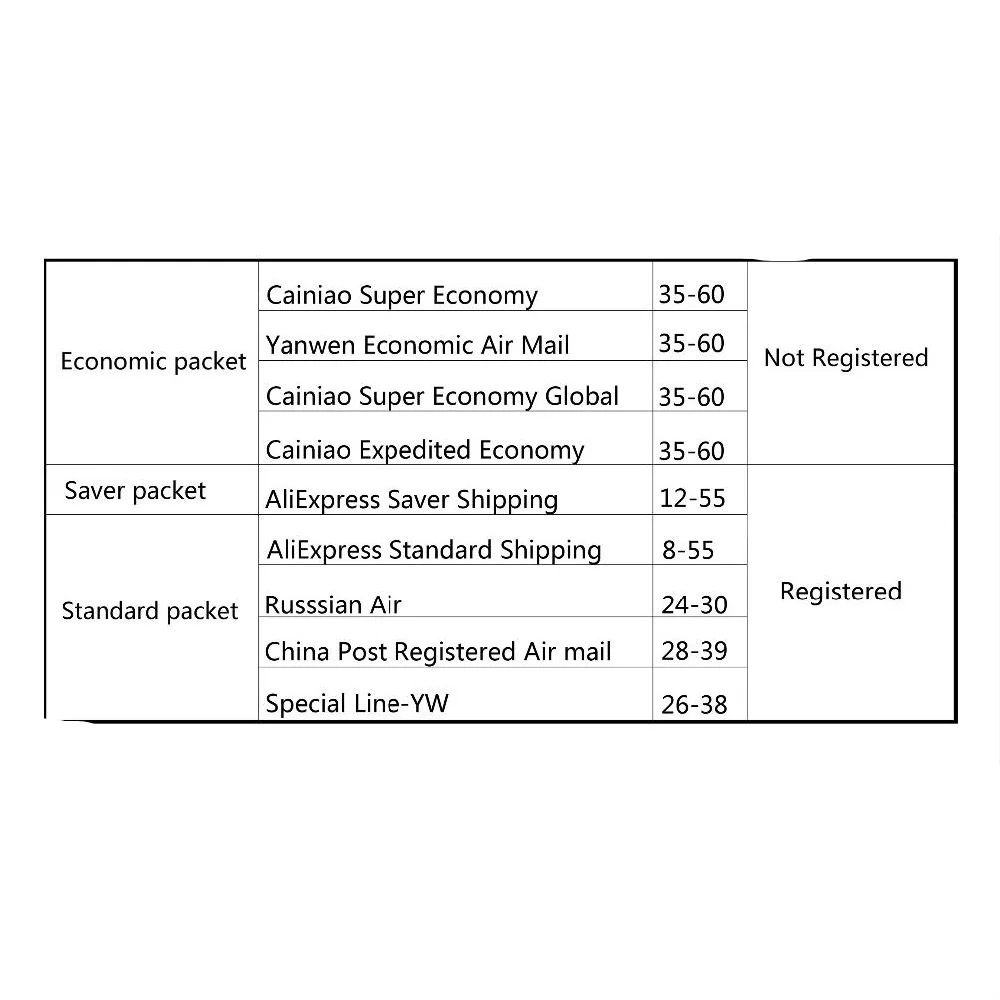 Оплата: Уважаемый покупатель, когда вы делаете заказ, пожалуйста, выберите способ доставки. Обычная Маленькая посылка Почта Китая, а также Бесплатная доставка, товары не могут быть отслежены после того, как они покинут Китай. Если это неприемлемо, пожалуйста, выберите AliExpress стандартную транспортировку или электронную посылка и другие способы доставки, Но вам нужно оплатить доставку. Мы отправим товар в течение 1-2 рабочих дней, как только ваш платеж будет завершен, и, пожалуйста, тщательно подтвердите ваше Контактное имя, адрес, почтовый индекс и номер телефона после размещения заказа, который поможет вам получить товар вовремя. Послепродажное обслуживание: 1. Если у вас есть какие-либо вопросы при получении товара, пожалуйста, не поднимайте спор. Пожалуйста, немедленно свяжитесь с нами, и мы поможем вам решить проблему. 2. Пожалуйста, обратите внимание, что срок доставки для Почта Китая General Packet Plus, Почта Китая Registered Air Mail и AliExpress Стандартная доставка составляет 16-35 рабочих дней. В чехол особых обстоятельств, как, например, погода, праздники, корректировки политики, обычаев, а также отдаленных районах, время доставки будет задержана. Спасибо за понимание. 3. Время защиты Aliexpress составляет 60 дней (90 дней в нескольких странах/регионах). Если время защиты близится к концу, и вы не получили товар, пожалуйста, свяжитесь со мной, я помогу вам тремя способами: A. Продлить время защиты; b. Повторно отправить товар; c. Возврат средств. Отзывы: Когда вы получаете товары и довольны, пожалуйста, дайте нам оценку в пять звезд, спасибо за сотрудничество. Способы доставки: