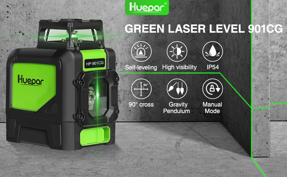 1 X лазерный уровень Huepar 901CG (без батареи)