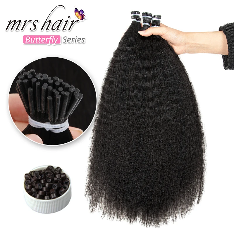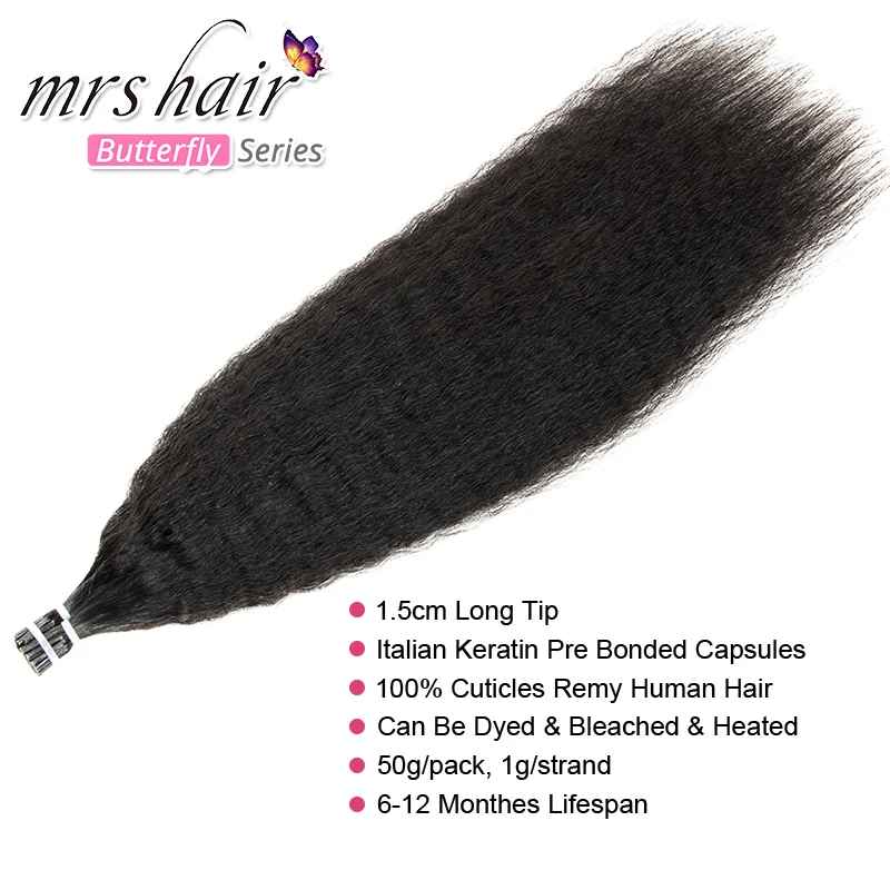 MRSHAIR необрезанные волосы для наращивания, прямые человеческие волосы для черный Для женщин микро бусины заколки для волос 50 г/упак. с Бесплатная 1,5 см Кератин советы