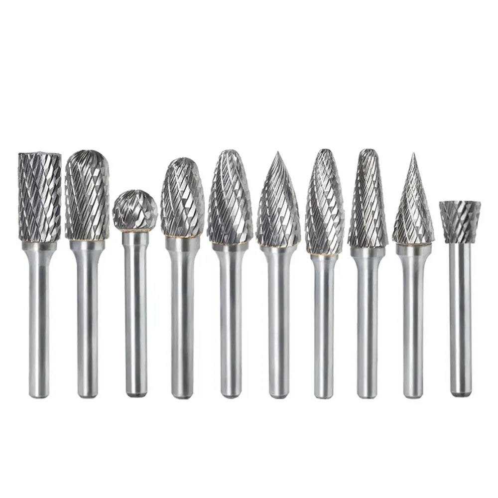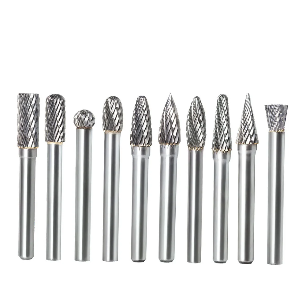 6x6 мм, 6x8 мм, 6x10 мм и 6x1 2 мм карбида вольфрама заусенцы резьба бит двойной резец для роторного заусенца набор шлифовальный станок металлический чертеж бит CNC гравировка