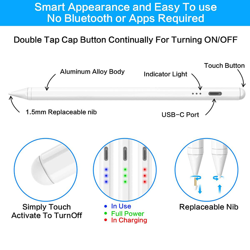 Карандаш для iPad магнитно прикрепляется к боковой стороне вашего iPad. Больше не теряется и проще брать и размещать. Расслабьтесь рукой на экране свободно во время письма или рисования, высокая точность и сверхответственная латентность, обеспечивает превосходное использование опыта.