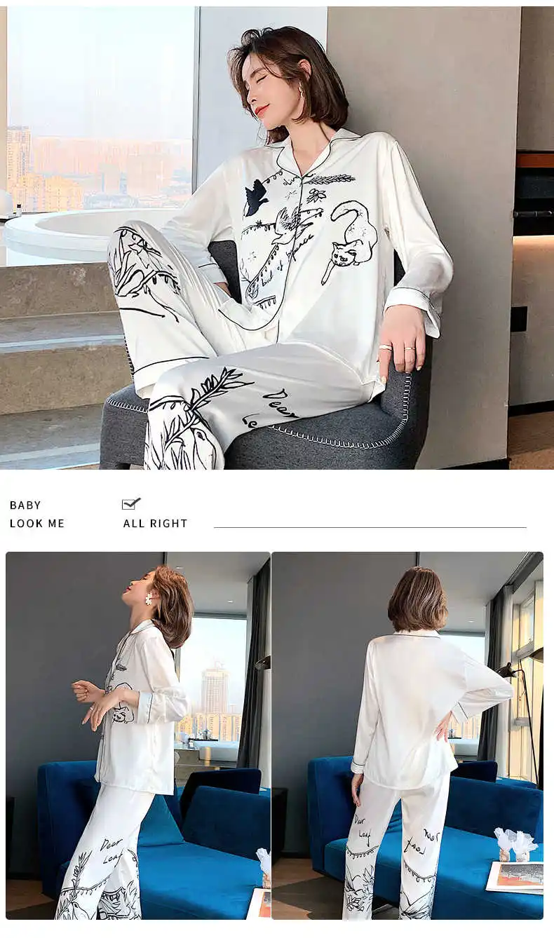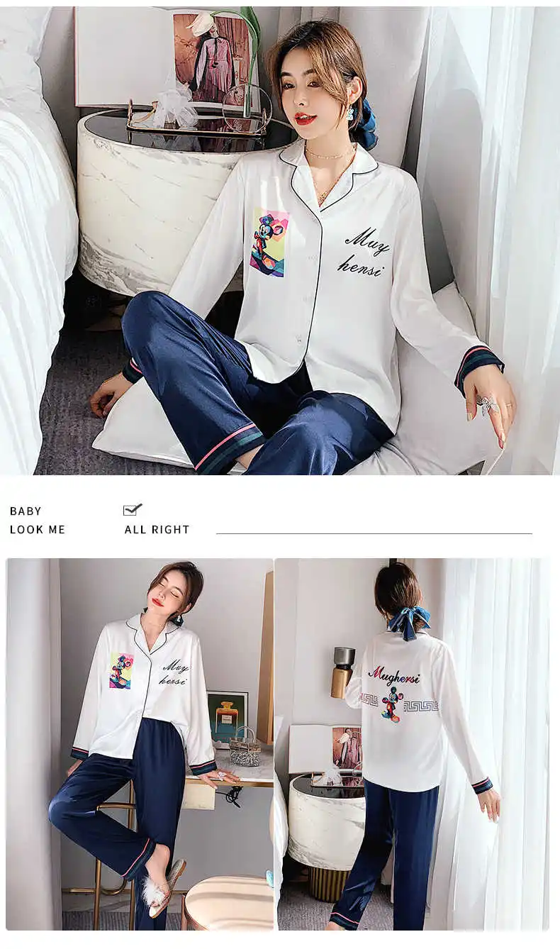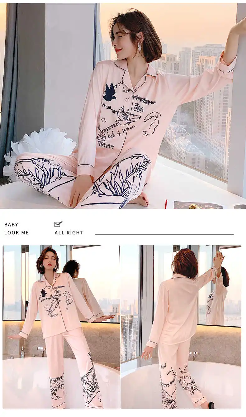 Пижама с длинными рукавами длинный рукав брючный костюм тонкий стильный