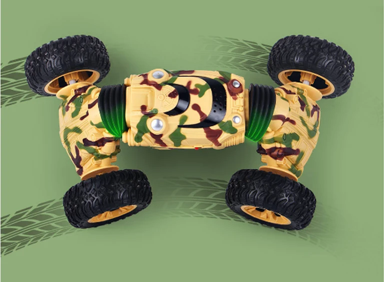 Двухсторонний2,4 ГГцRC автомобиль с мощным матовым двигателем, делает сальто без усилий,Вперед и назад, поверните налево и поверните направо, четыре движущейся силы,Деформация одной кнопкой, 2 режима воспроизведения, плоский режим и прочный режим.