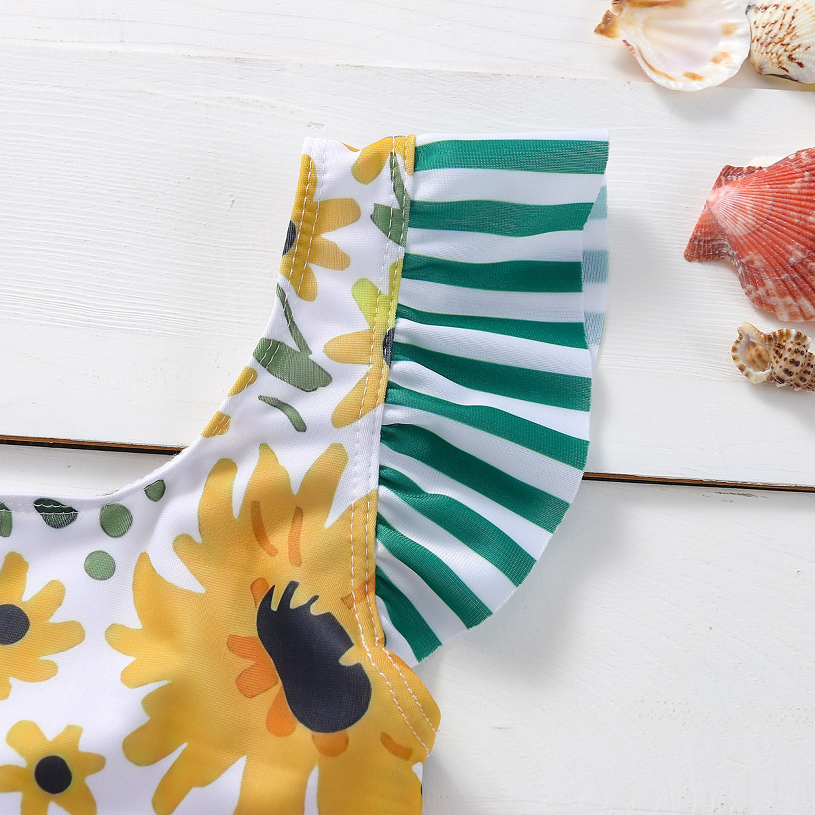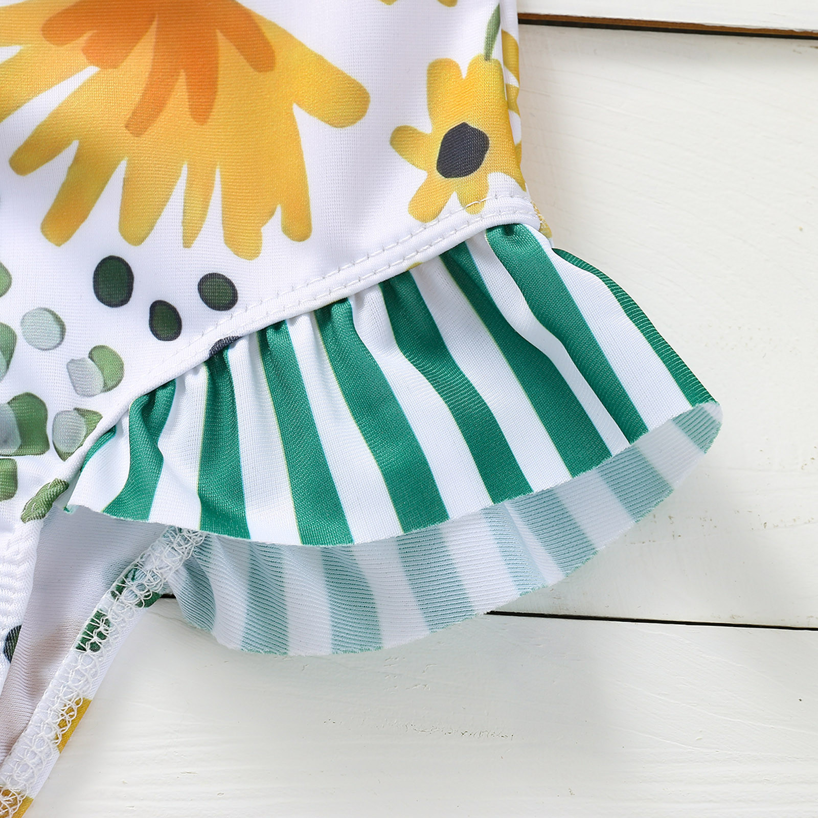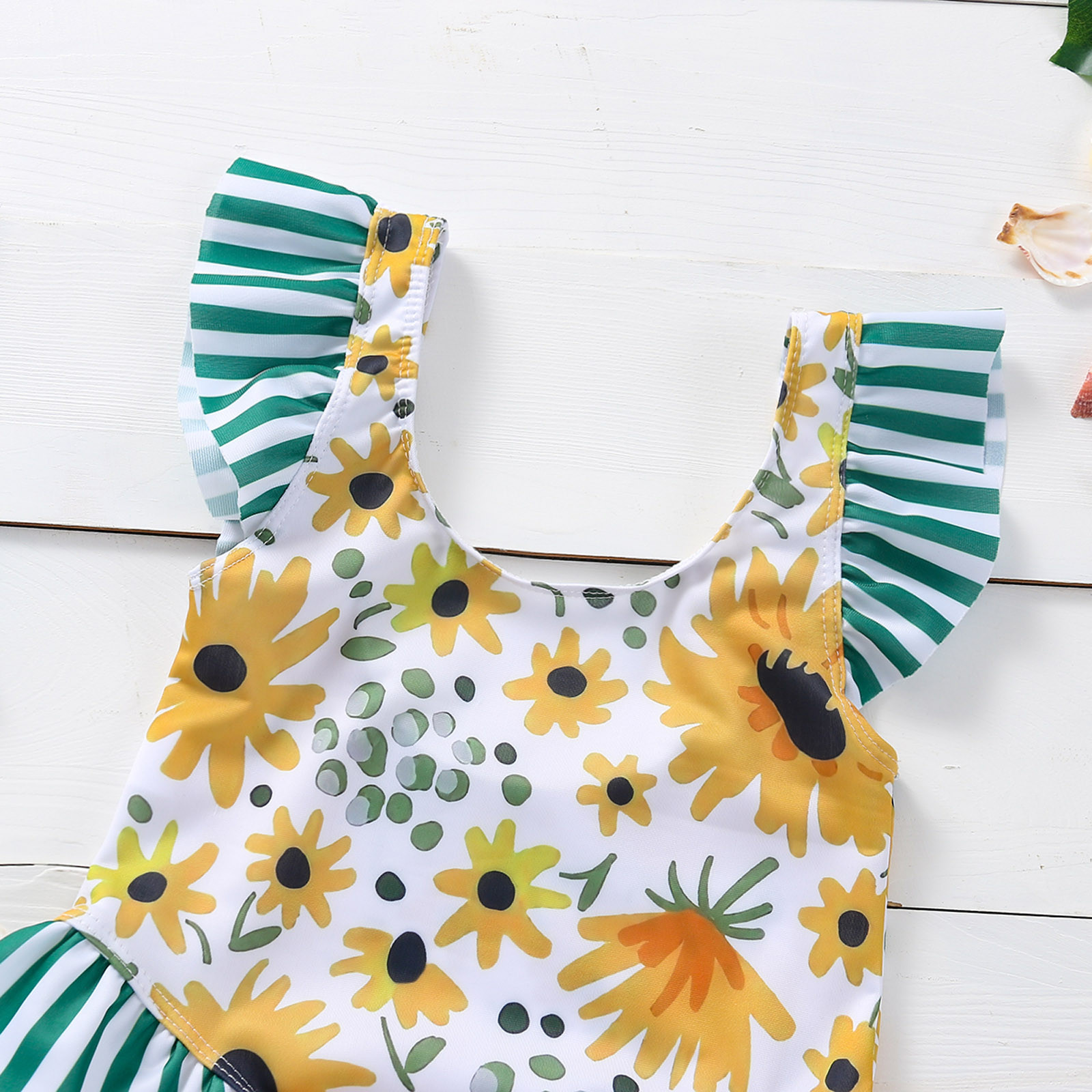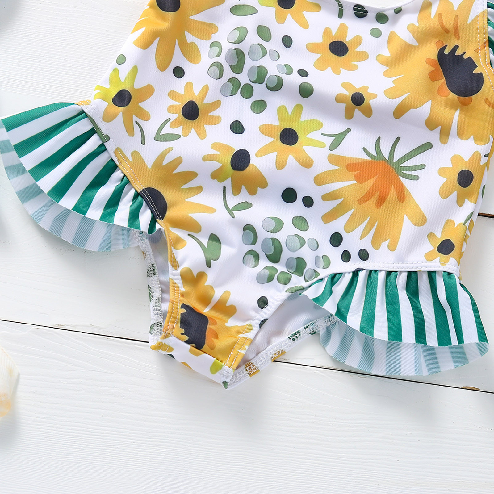 Toddler Girls Swimsuit Wave Flying Sleeves Sunflower Print One-piece Swimsuit