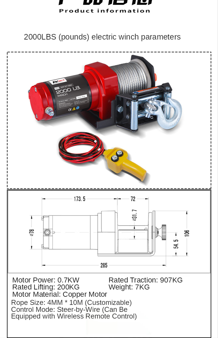 Pull force: 2000 lb 909 kg
