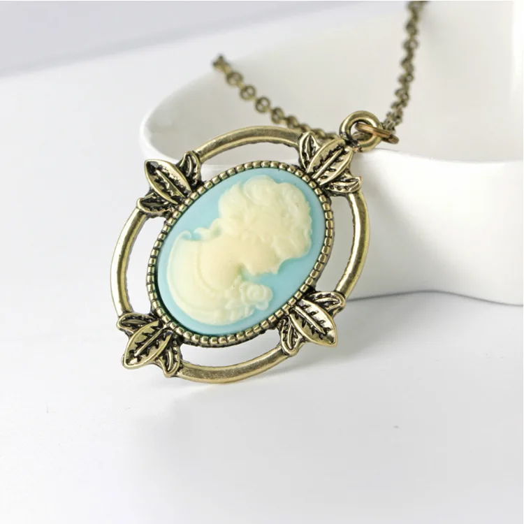 Дневники вампира, голова Кэтрин, Голубая Камея, винтажное античное бронзовое ожерелье, модные ретро украшения для мужчин и женщин, оптовая продажа