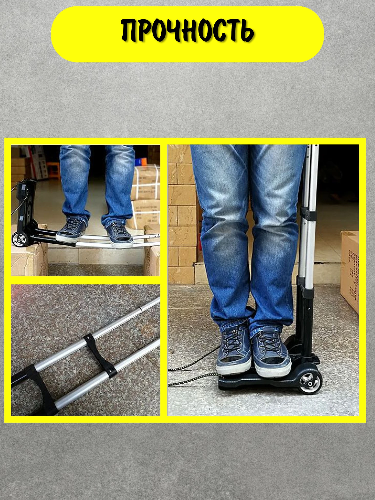 именно поясничный отдел позвоночника. И потому крайне важно беречь его, минимизируя риск при перемещении тяжёлых грузов. Для этого мы предлагаем воспользоваться складной тележкой, которая сделает доставку тяжёлых грузов почти такой же удобной, как поход в магазин за хлебом. Тележка состоит из небольшой платформы и удобной ручки, в комплект также входит пружинный шнурок.
