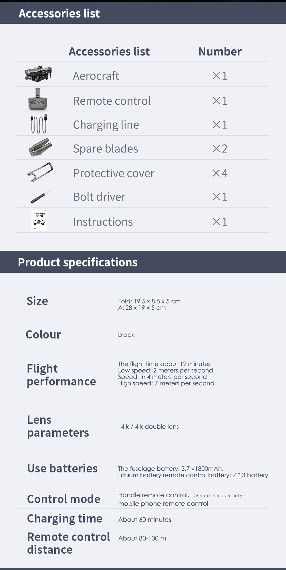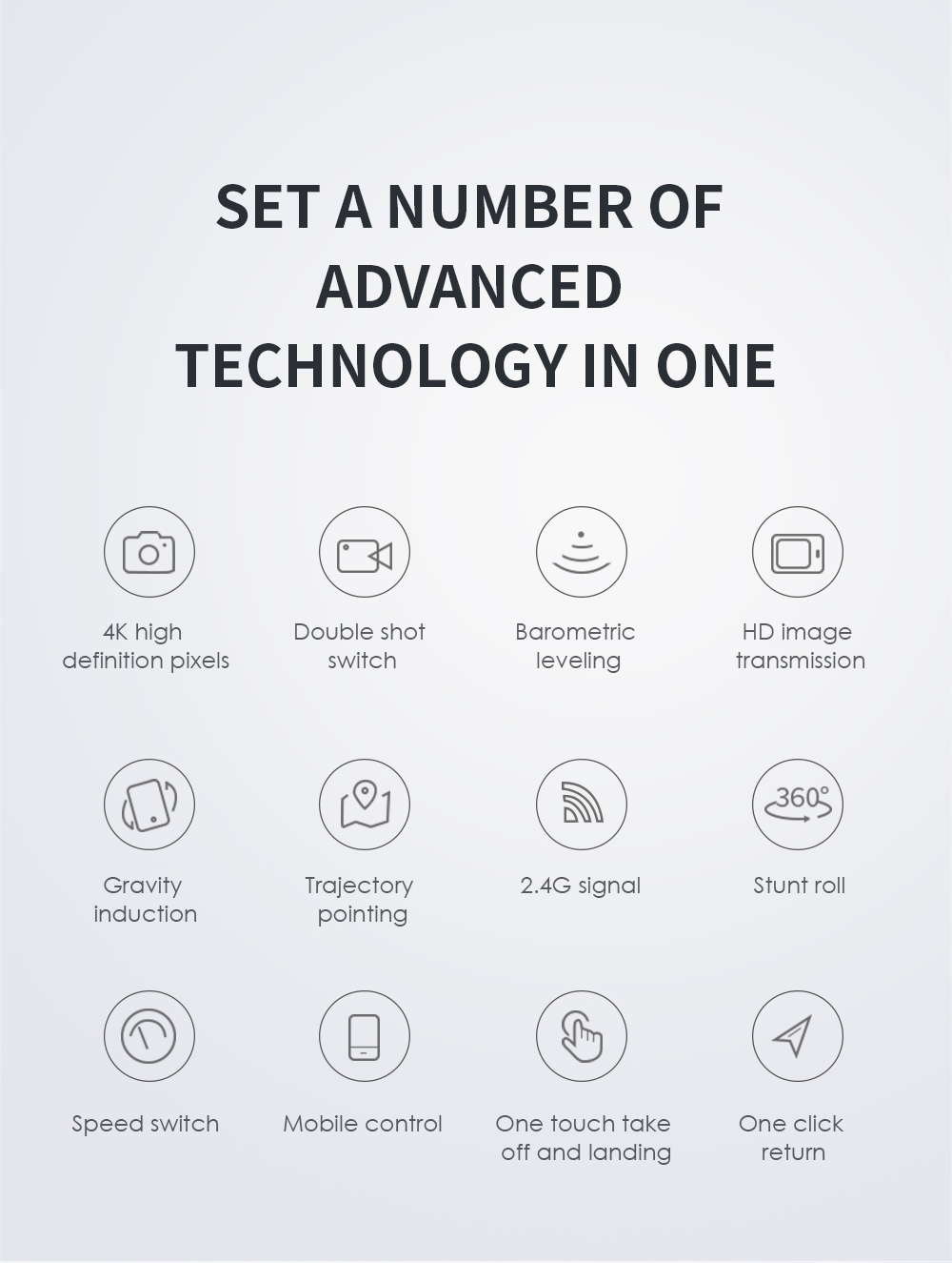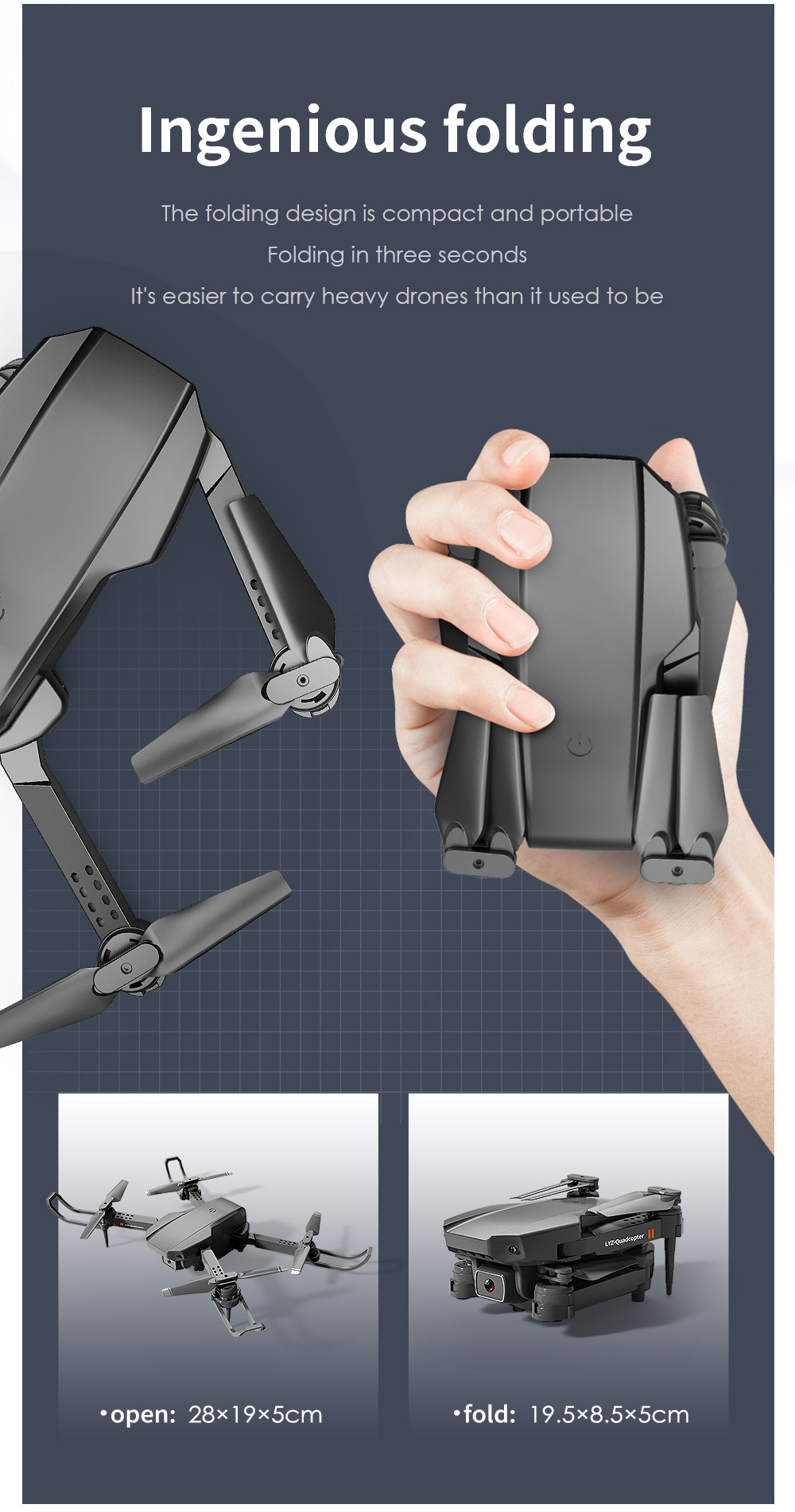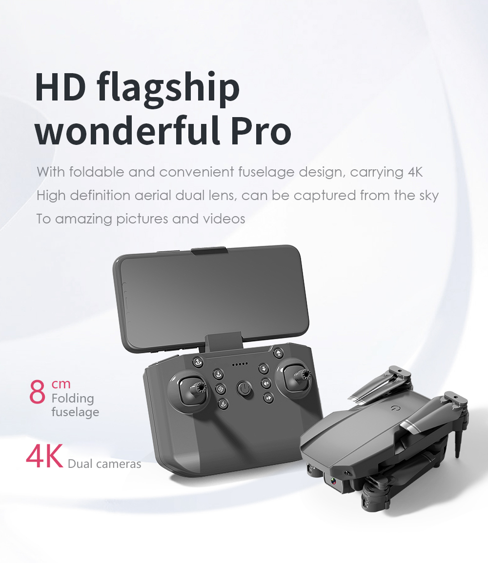 1. Благодаря складному и удобному дизайну корпуса, оснащенному 4K воздушным объективом высокой четкости, вы можете снимать Потрясающие фотографии и видео с неба.