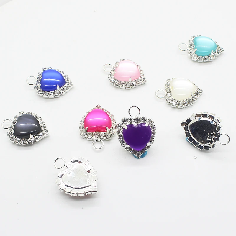 10 шт/лот 18 мм серебряные корейские ювелирные аксессуары из смолы Персиковое Сердце коготь дрель настенная подвесная Подвеска из горного хрусталя