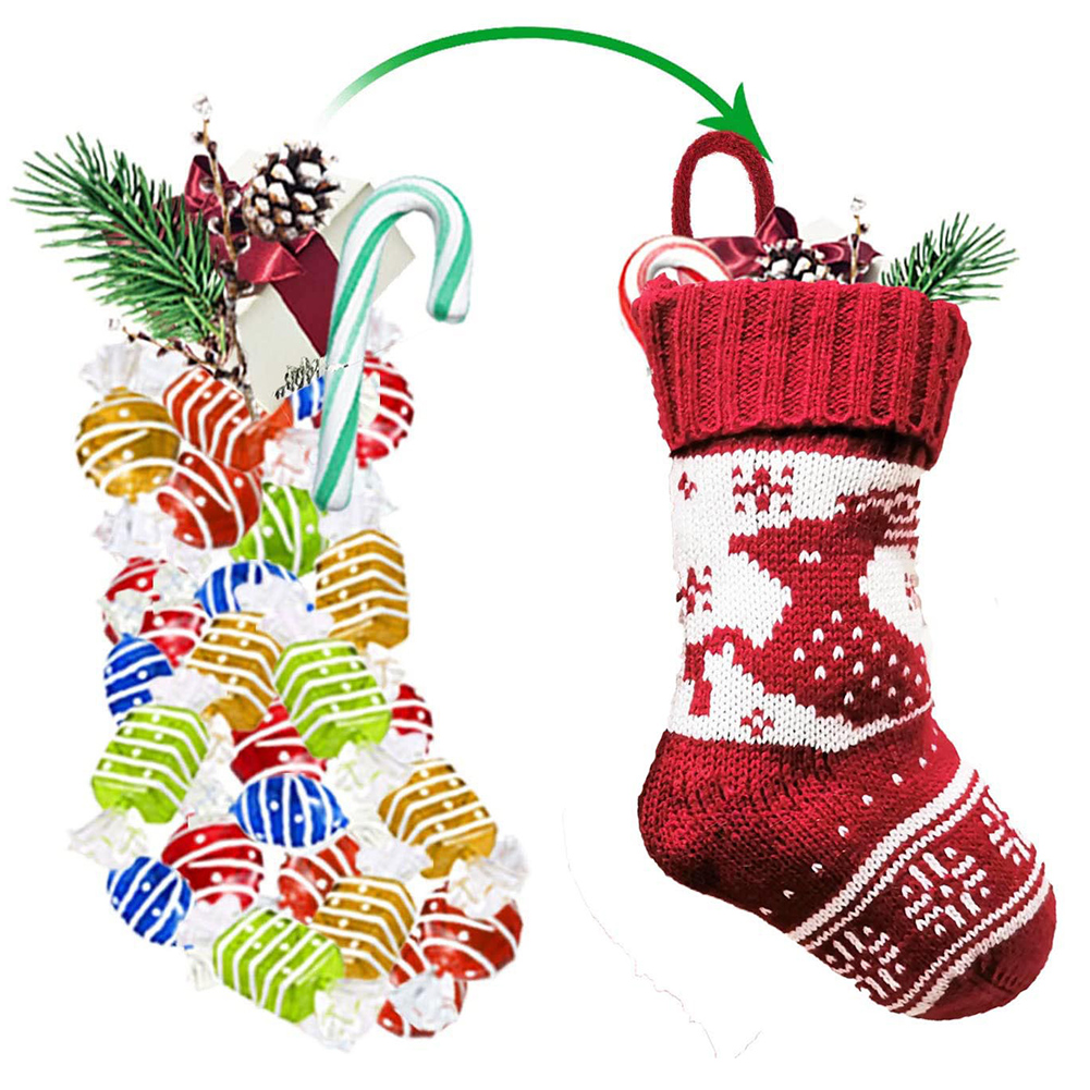 -Красивые и стильные рождественские носки с яблоком, много места для подарков и конфет.