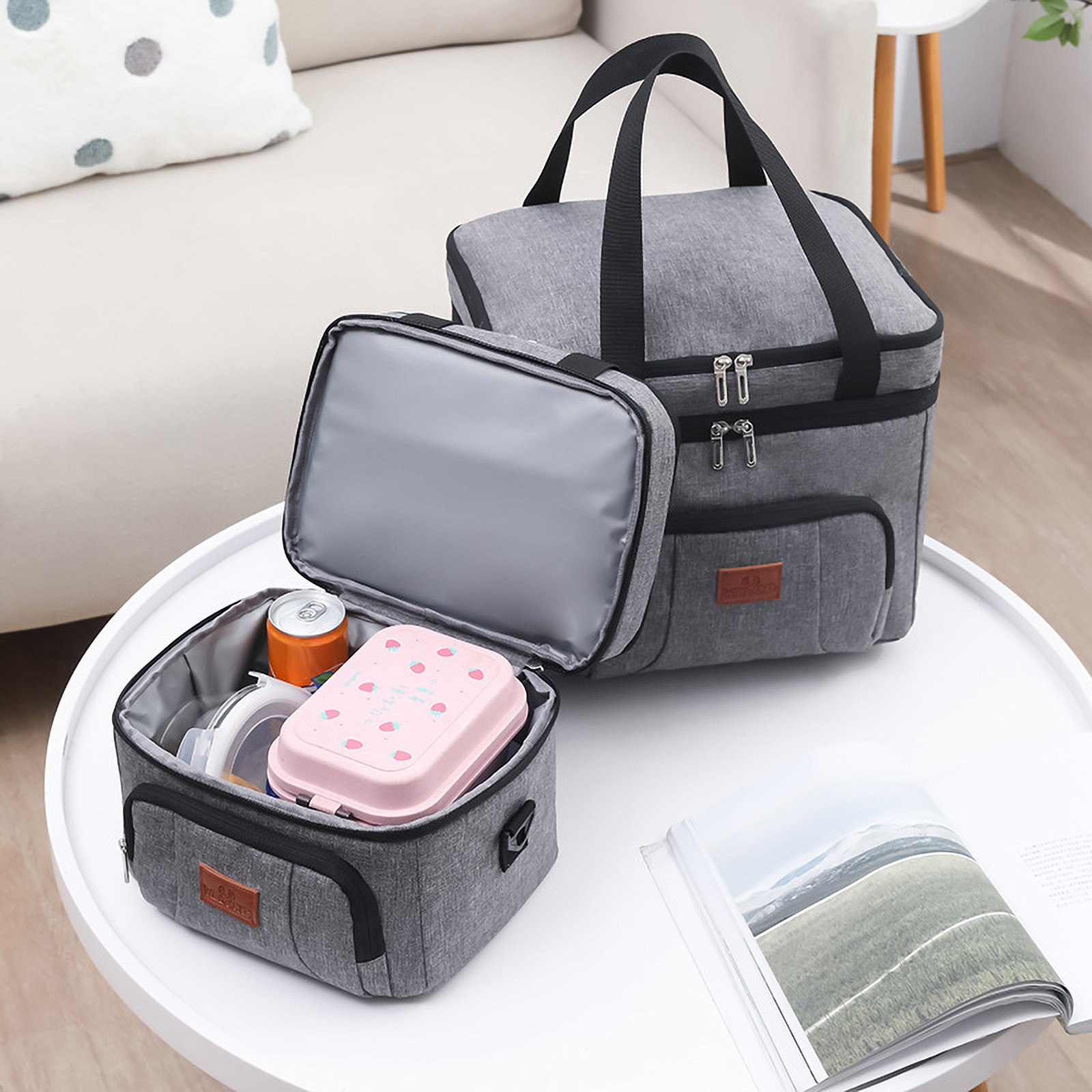 Несколько карманов: 1 главный теплоизолированный и герметичный отсек для хранения напитков или продуктов питания, 1 большой передний карман на молнии для хранения сухих предметов и посуды, также в комплект входит сетчатый мешок и сумка на молнии, есть передний карман на молнии с вертикальным дизайном внутри, который используется для хранения мобильных телефонов или небольших предметов.