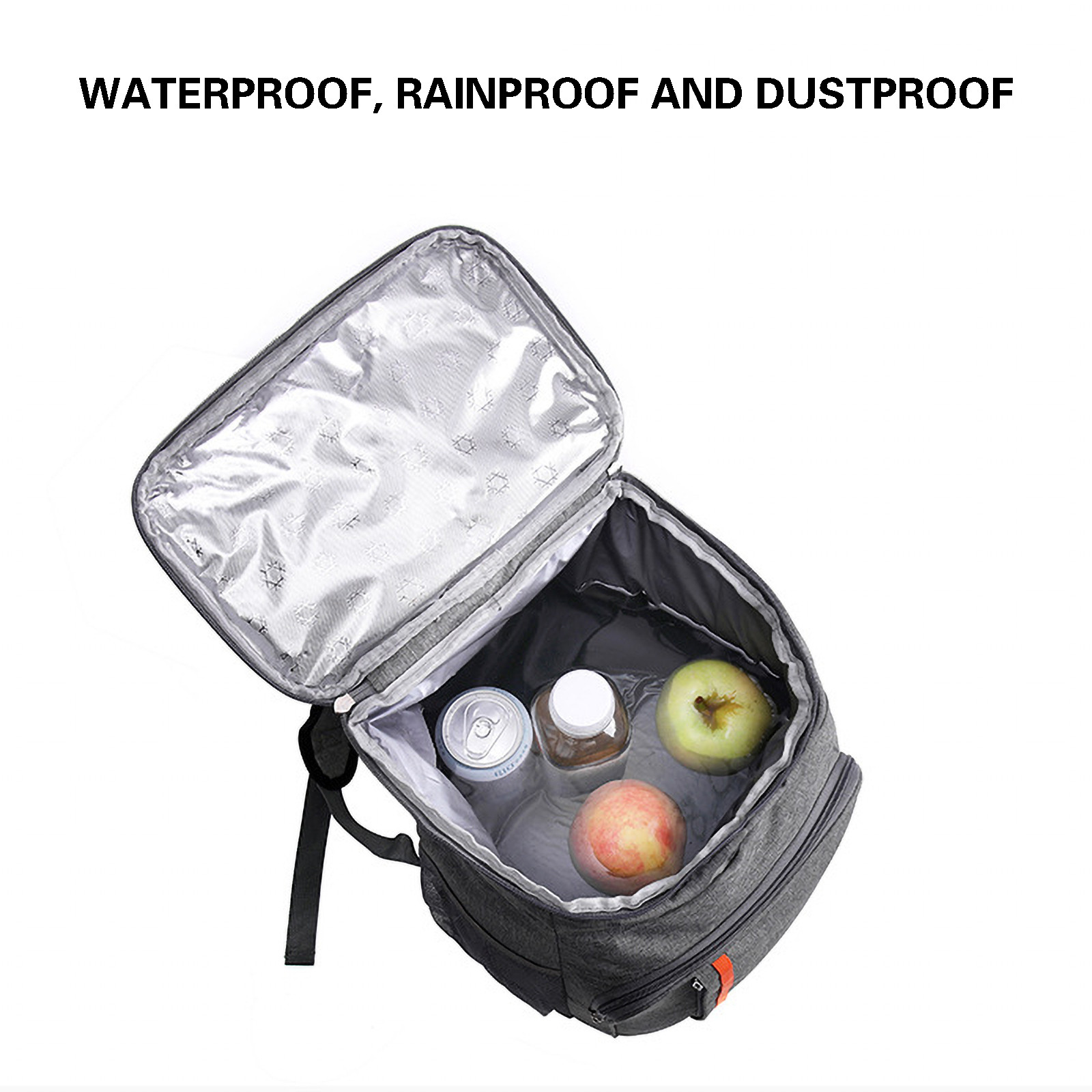 Герметичный Теплоизоляционный рюкзак: Улучшенный внутренний теплоизоляционный материал из хлопка с жемчугом и герметичный с подкладкой PEVA работает вместе, чтобы напитки/продукты питания были холодными или горячими в течение нескольких часов и сохраняли устойчивость к подключению.