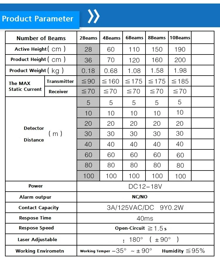 Infared луч детектор высота 120 см, 6 лучей 10 м расстояние обнаружения