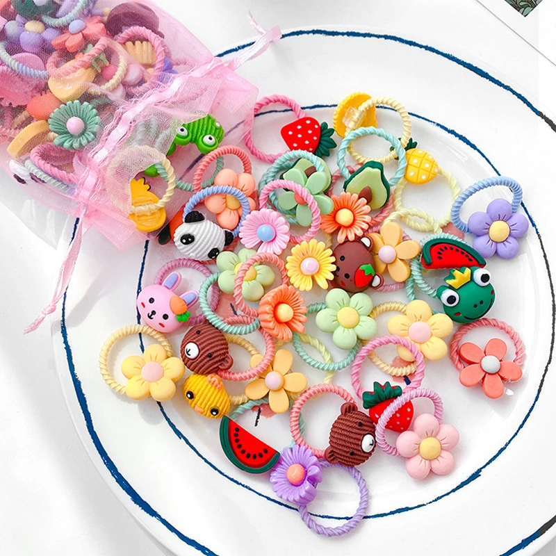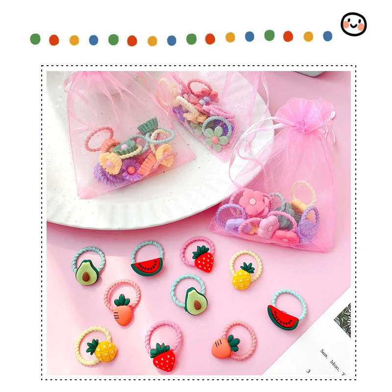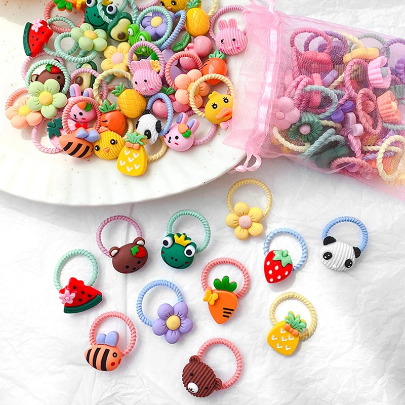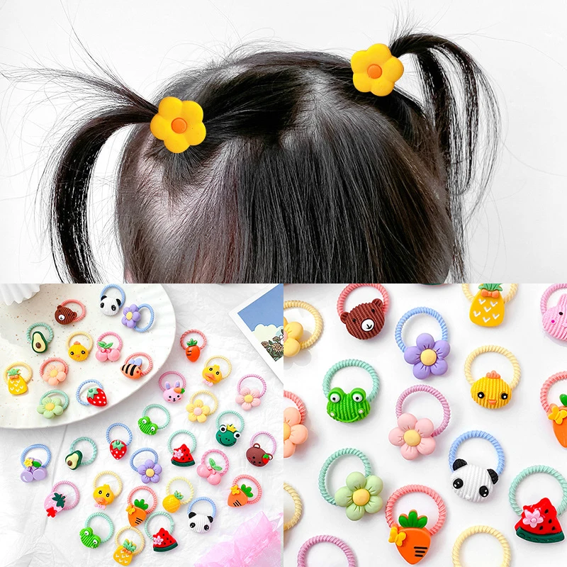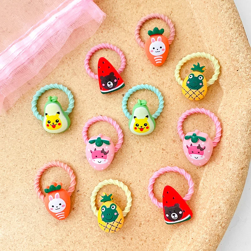 10 шт., Детская резинка, детское кольцо для волос, аксессуары для волос, для девочек, милые животные, цветы, веревка для головы, эластичная повязка на голову, хвост, головной убор