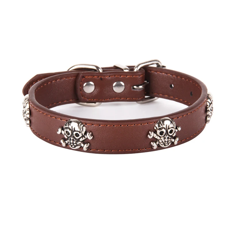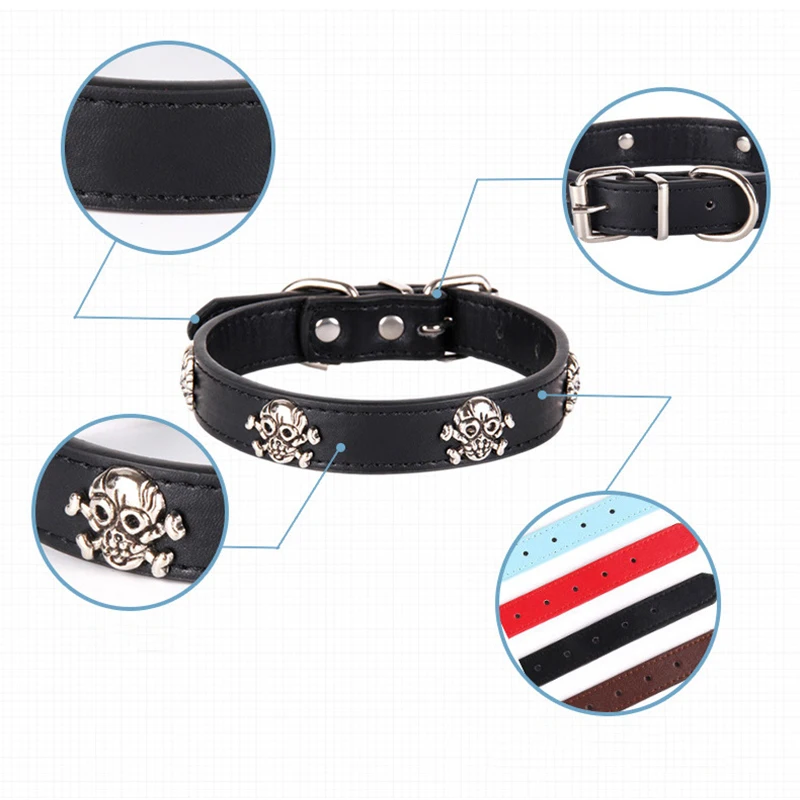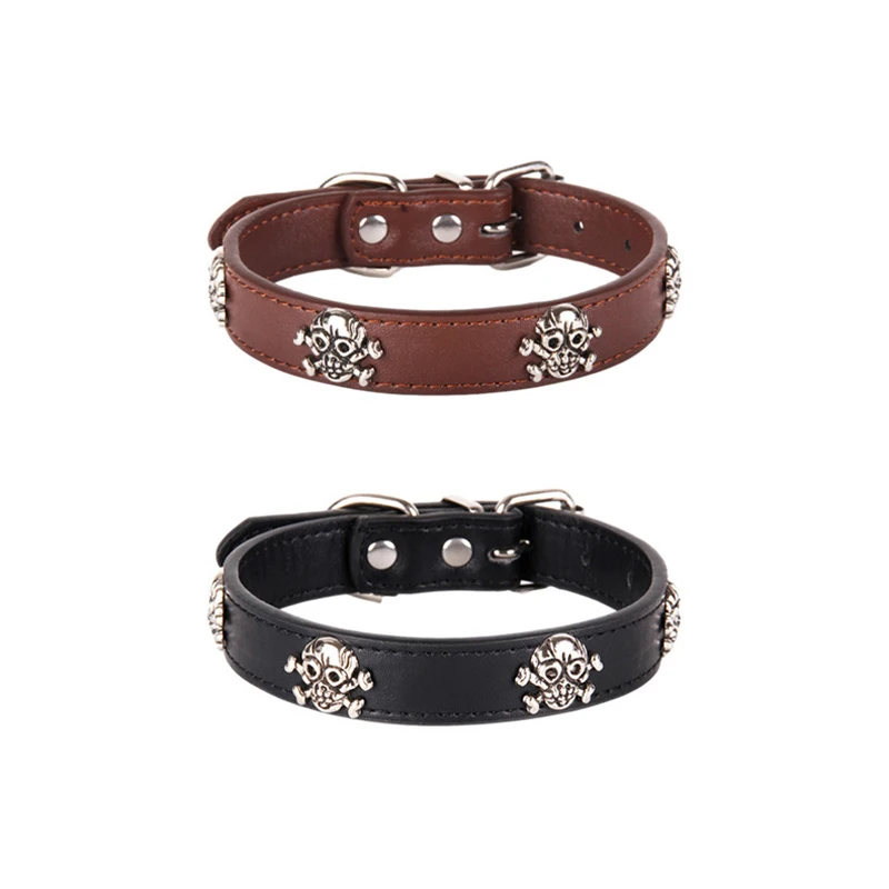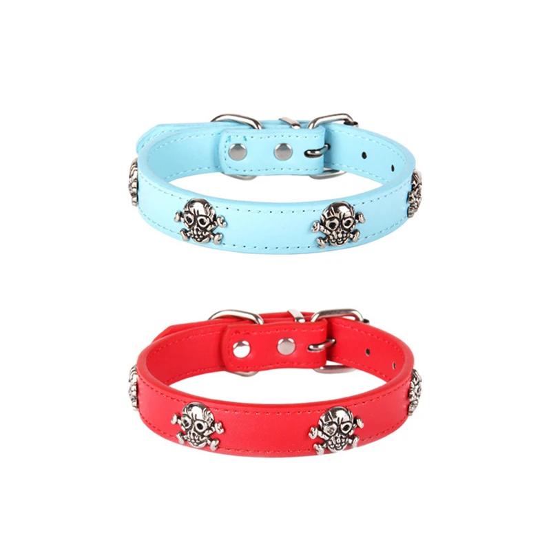 Abrlo/Новинка 2021 года; Модный ошейник для животных на Хэллоуин; Кожаный ошейник с черепом в стиле панк; Ошейники для собак; Регулируемый ошейник для кошек; Однотонные товары для щенков питомцев