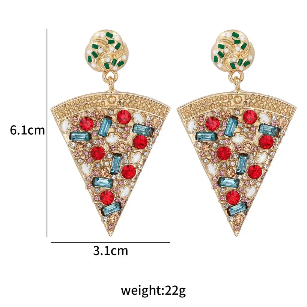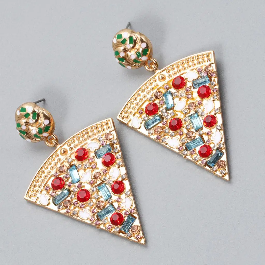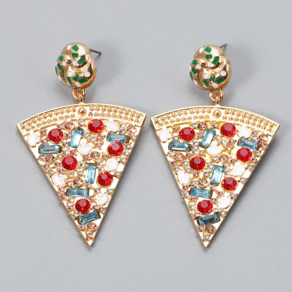 Оптовая продажа, серьги с рисунком пиццы, Новые красочные милые классические висячие серьги ручной работы с кристаллами Za для женщин, 2021 ювелирные изделия