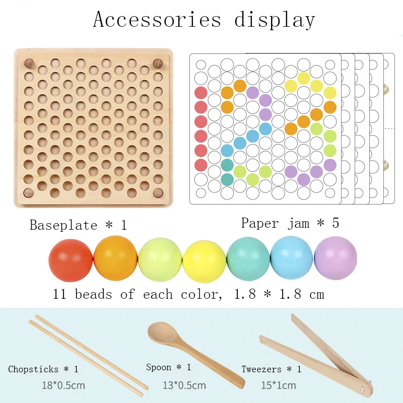 Нижняя пластина * 1, пустотелая Нижняя пластина * 1, бумажная Варенька * 5, силиконовая чашка * 7, бусины каждого цвета * 11, палочки для еды * 1, ложка * 1, зажим * 1