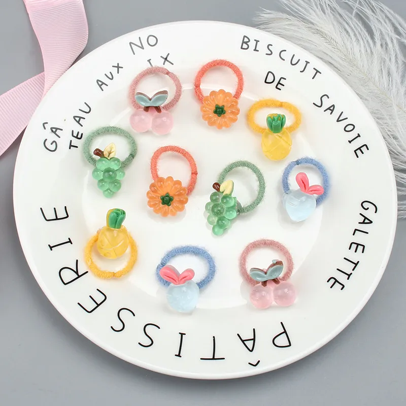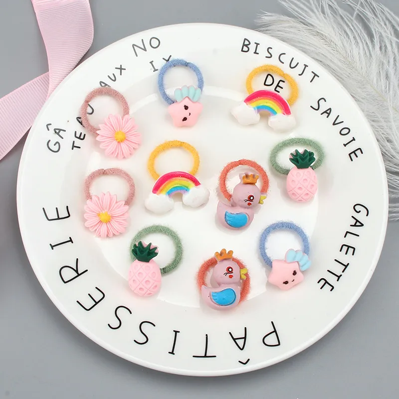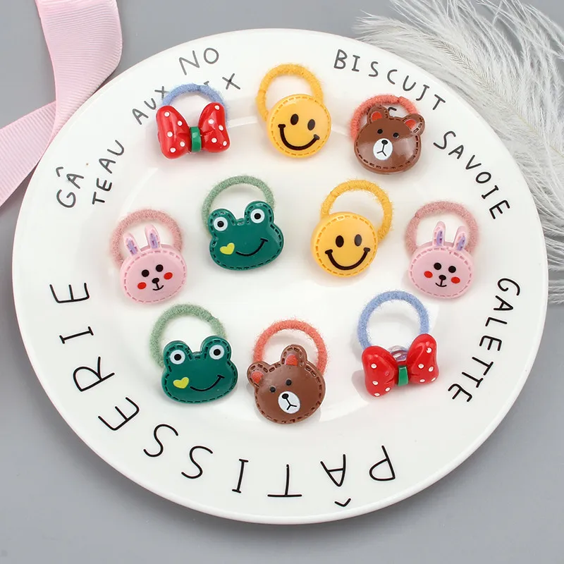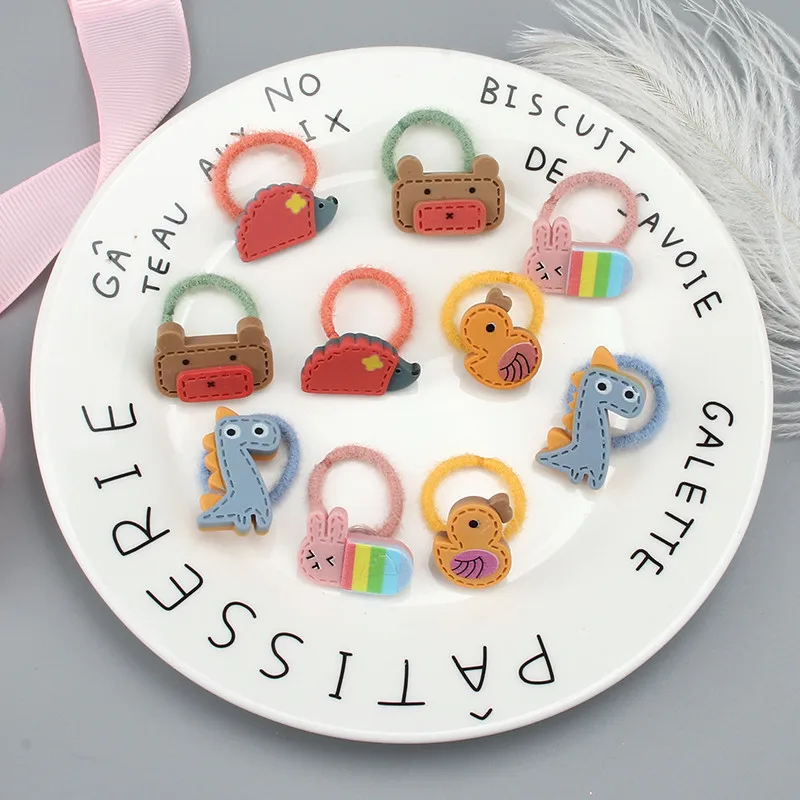 10 шт. / Компл., Детская резинка для волос, аксессуары для волос, милые животные, цветы, эластичные резинки, для девочек;, плюшевое маленькое кольцо для волос с героями мультфильмов, веревка на голову