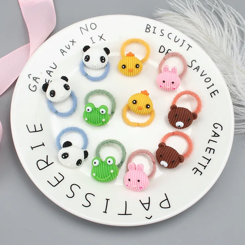 10 шт./компл. Детская резинка для волос аксессуары для волос милые животные цветы эластичные резинки девушки мультфильм плюшевые маленькие волосы кольцо на голову веревка
