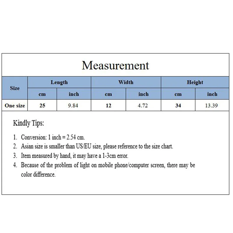 | ОдинРазмеры | 25 см | 12 см | 34 см |