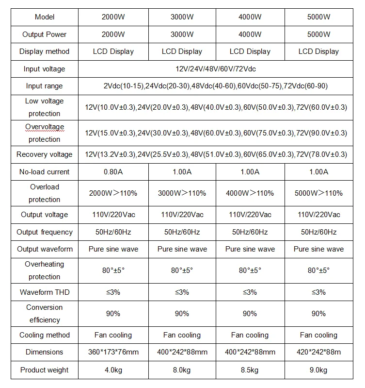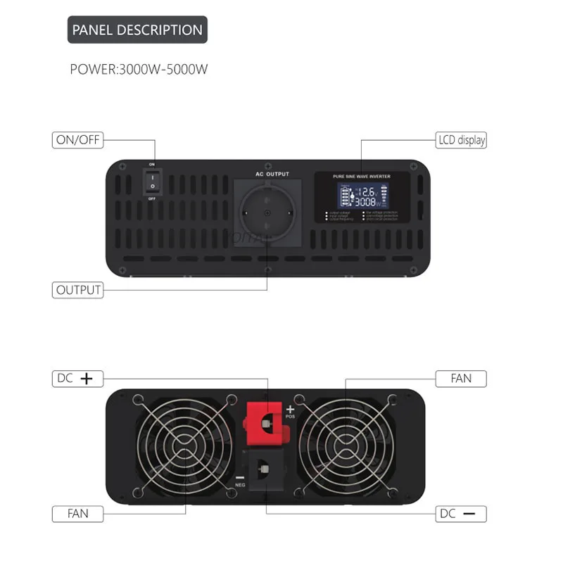 1. Источник питания инвертора использует технологию SPWM, контролируемую MCUmicro-processing, чистый синусоидальный волновой выход, и форма волны чистая.