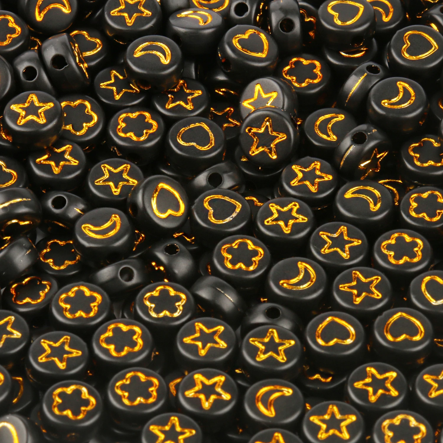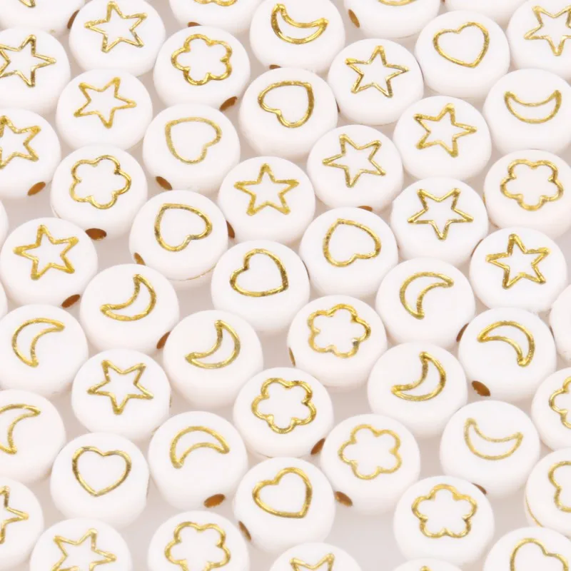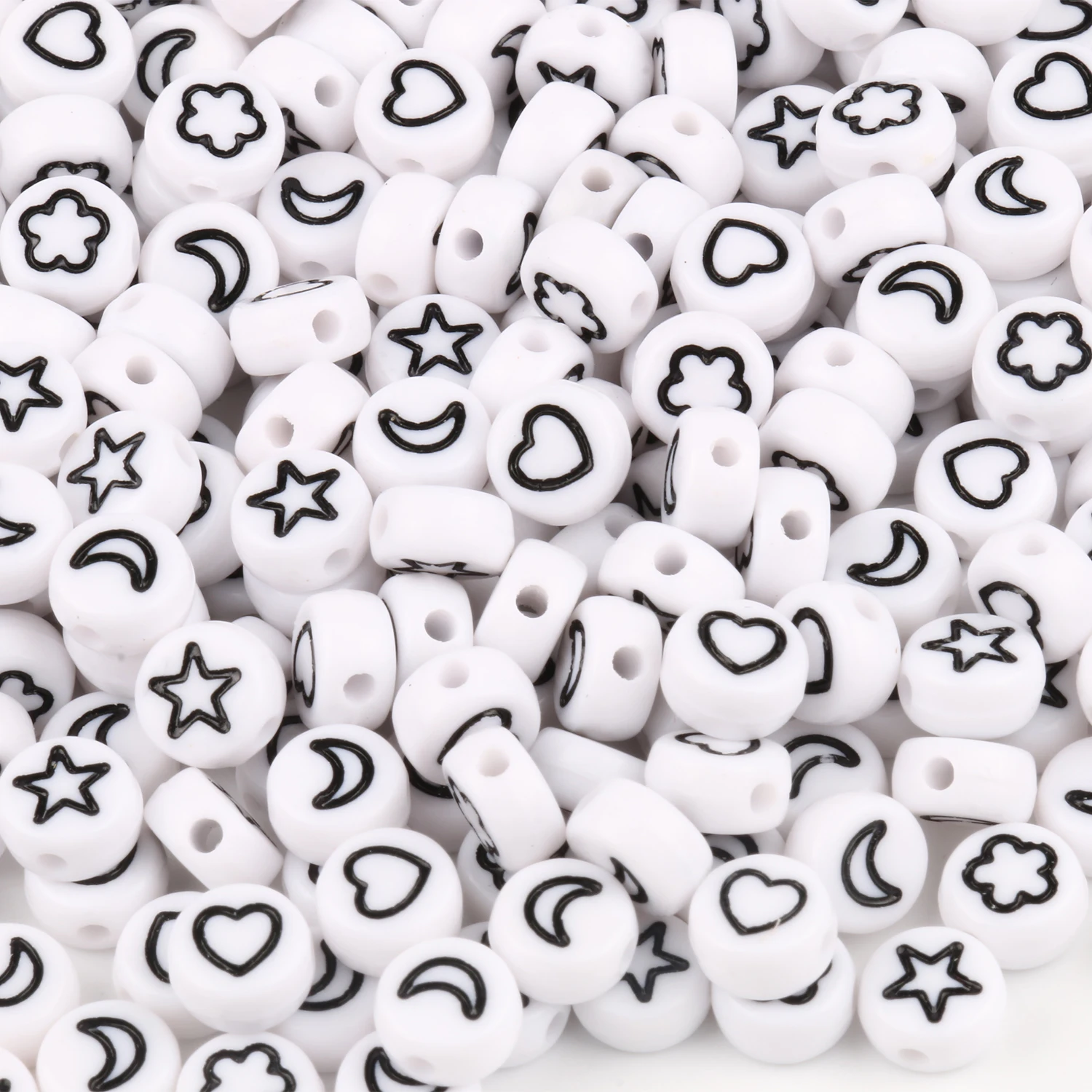 4*7 мм случайные белые и золотые круглые плоские акриловые цветы в виде звезды луны сердца свободные бусины для самостоятельного изготовления ювелирных изделий