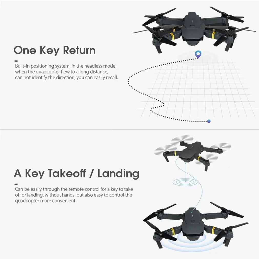 5. Возврат одной кнопки: встроенная система позиционирования, в безголовом режиме, когда Квадрокоптер летит на большое расстояние, не может определить направление, вы можете легко отозвать.