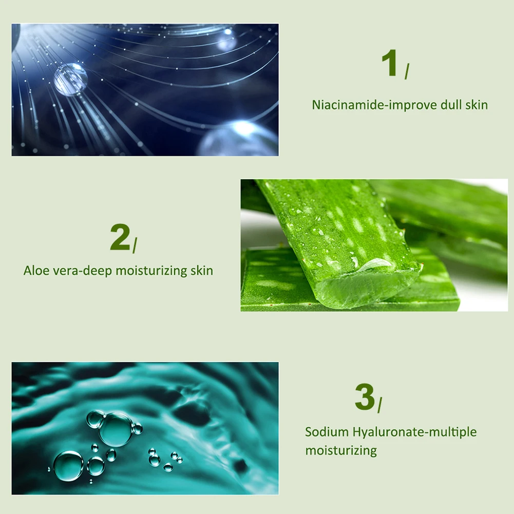 * 1. Богатый алоэ, никотинамид, гиалуронат натрия, салициловая кислота и другие ингредиенты, мягкий и без раздражения.