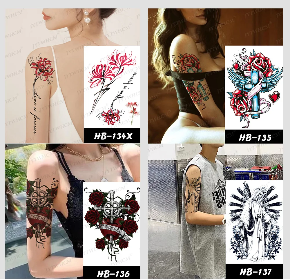 Стиль: поддельные татуировки/флэш-татуировки/Временные татуировки для женщин/мужские татуировки/Цветные татуировки/татуировки на руку/бедра/татуировки на груди/татуировки на шею/тату на спине/сексуальные татуировки