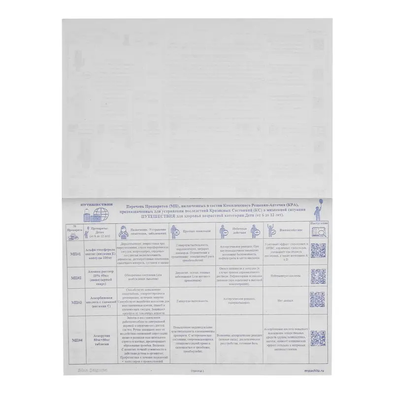 Инструкция к Аптечке Путешествия для Детей (от 6 до 12 лет).