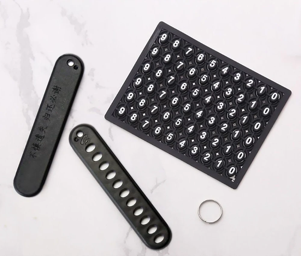 Посылка включает в себя: 1 комплект номерного знака ckeyhain (1 кольцо + 1 карта + 6 0-9 номера)