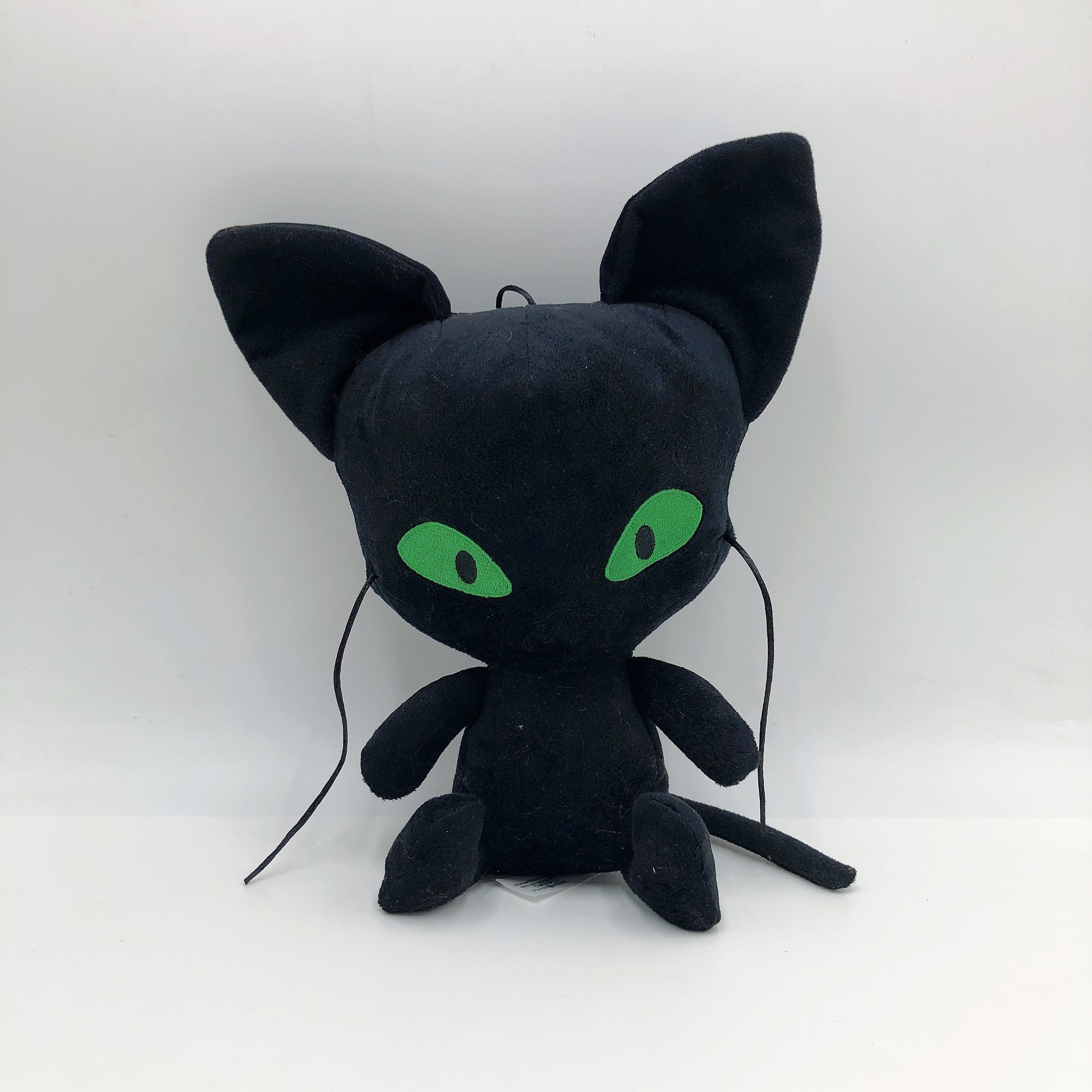 Характеристики: Красная божья коровка 25 см от головы до носка, черная кошечка 30 см от уха до носка, 25 см без ушей и весит около 100 г