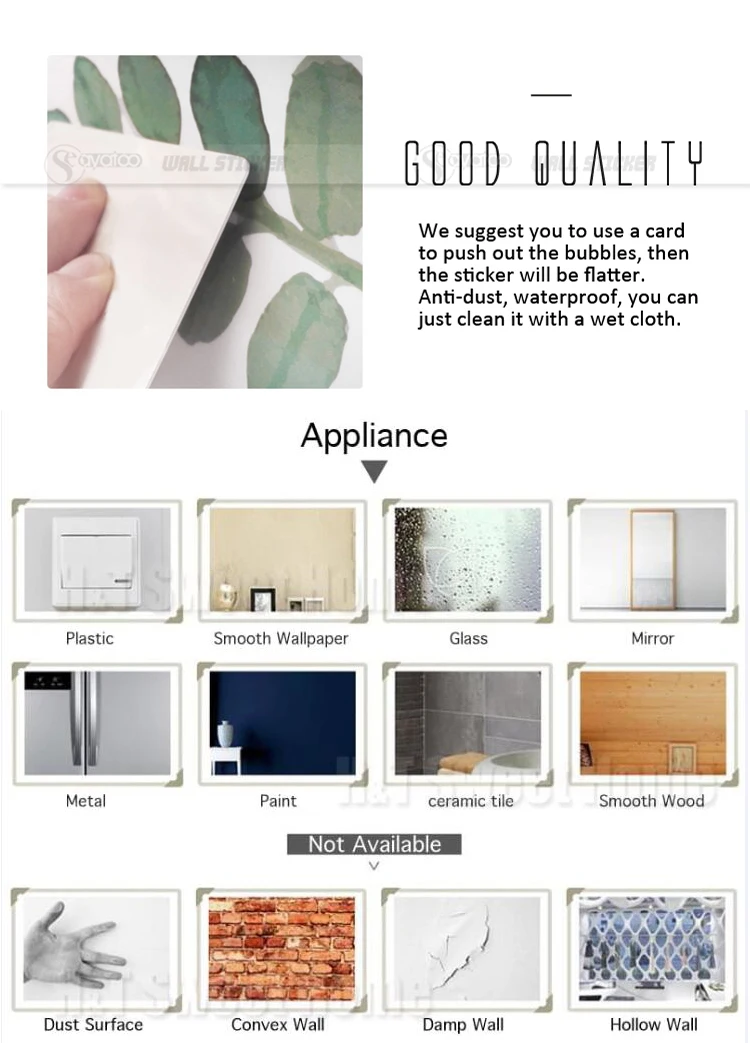 4. Недавно окрашенная поверхность не рекомендуется использовать наклейку на стену до полного высыхания после 12 недель.