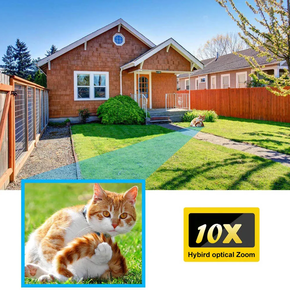【Smart Pan/Tilt/zoom】обеспечивает 350 ° горизонтальное и 110 ° вертикальное вращение с 10X цифровым + оптическим зумом Hybird для достижения почти 360 ° панорамного просмотра.