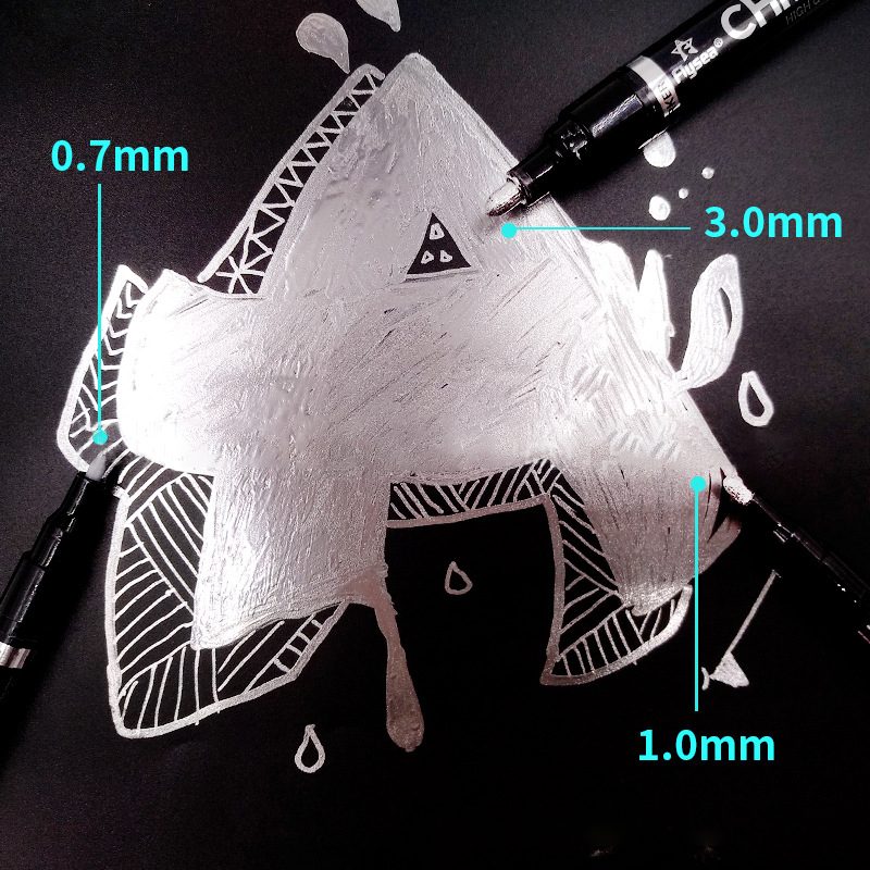 【Smooth flow】высокий блеск эффекты могут быть созданы на большинстве поверхностей, применяются к гладким поверхностям для зеркального эффекта. Разработанный с инновационным клапаном, чернила плавно протекают без остановок, протечек или кровотечения.