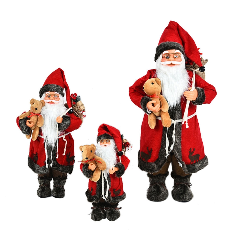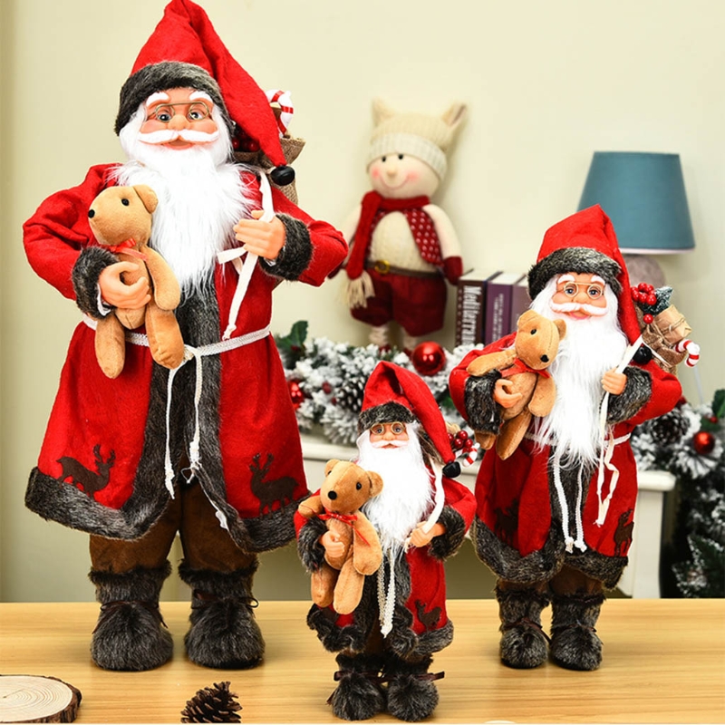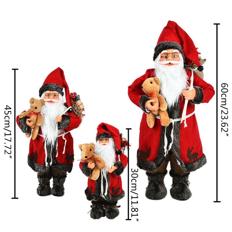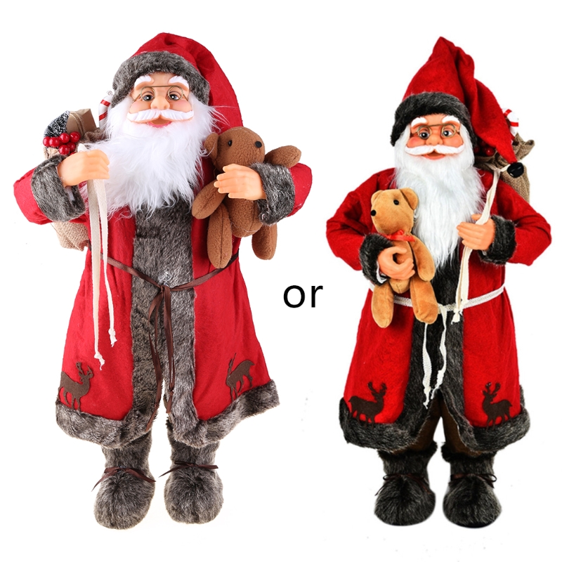 27RE Рождество Санта Клаус держа медведь плюшевая кукла стоя статуэтки украшение статуи Рождество Коллекционная игрушка с орнаментом Декор