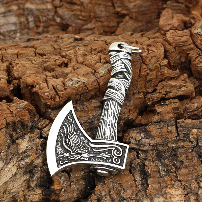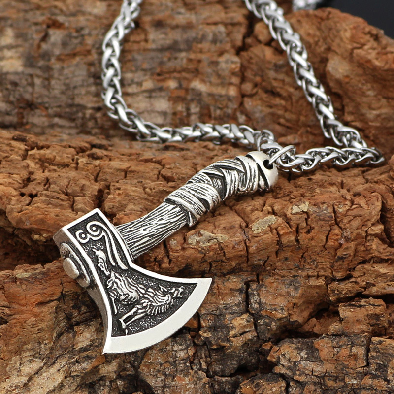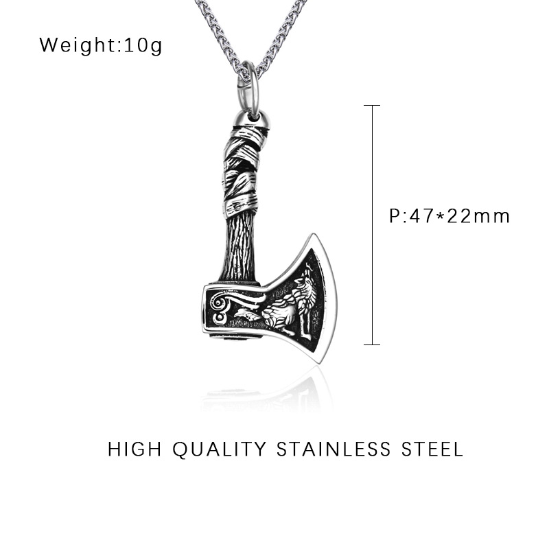 Name:Vintage Viking Axe Pendant Necklace for Men Women Stainless Steel Viking Wolf Odin Crow Amulet Necklace Nordic Viking Jewelry